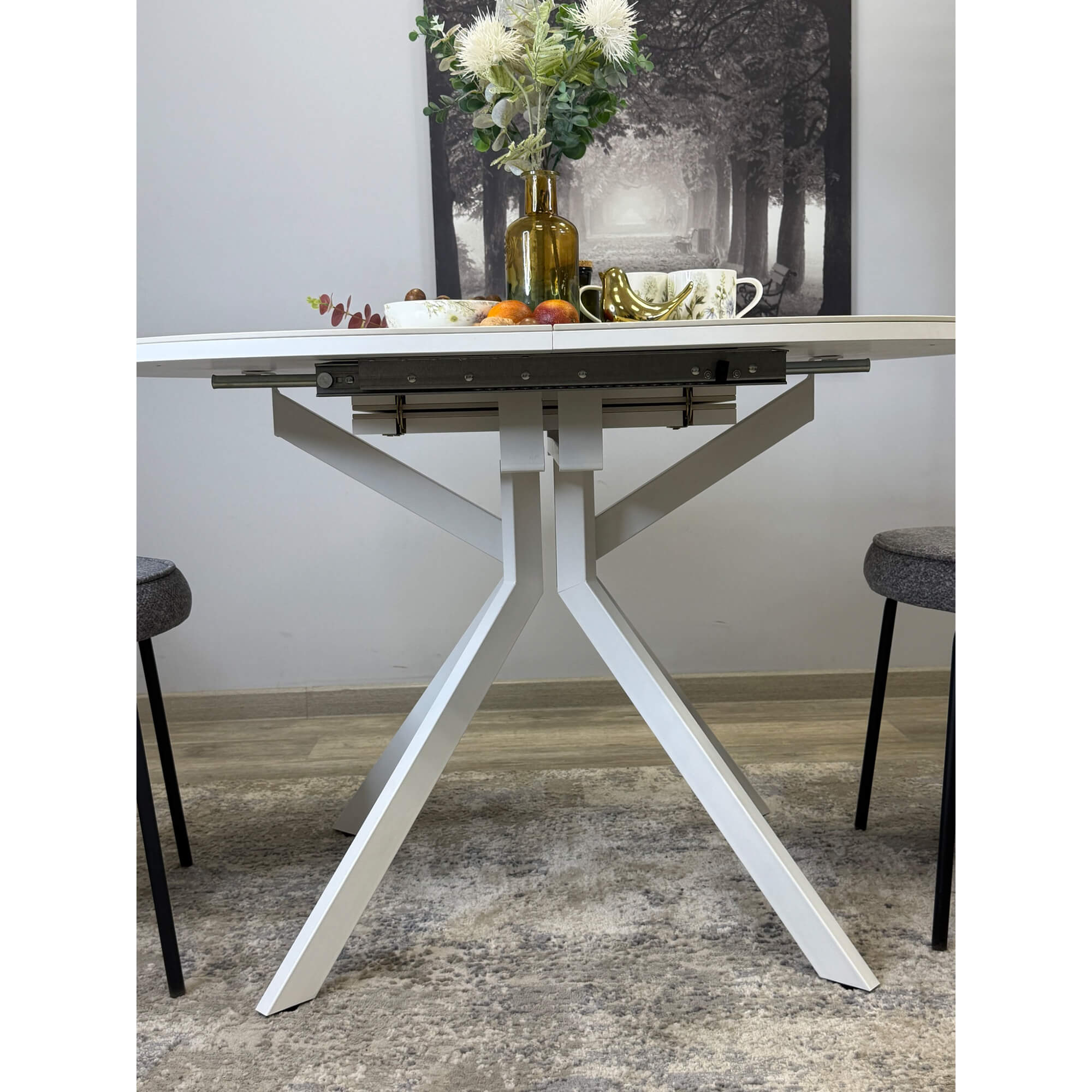 Один из лучших столов с центральной опорой на рынке - легкий визуально, с дорогим керамическим покрытием, очень устойчивый и эргономичный. Продуманы и посадка и удобная раскладка.