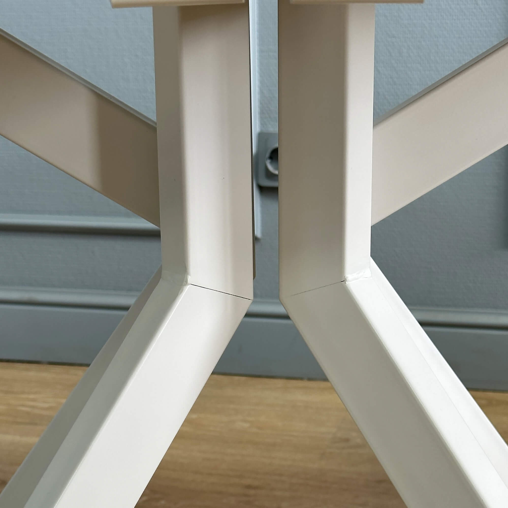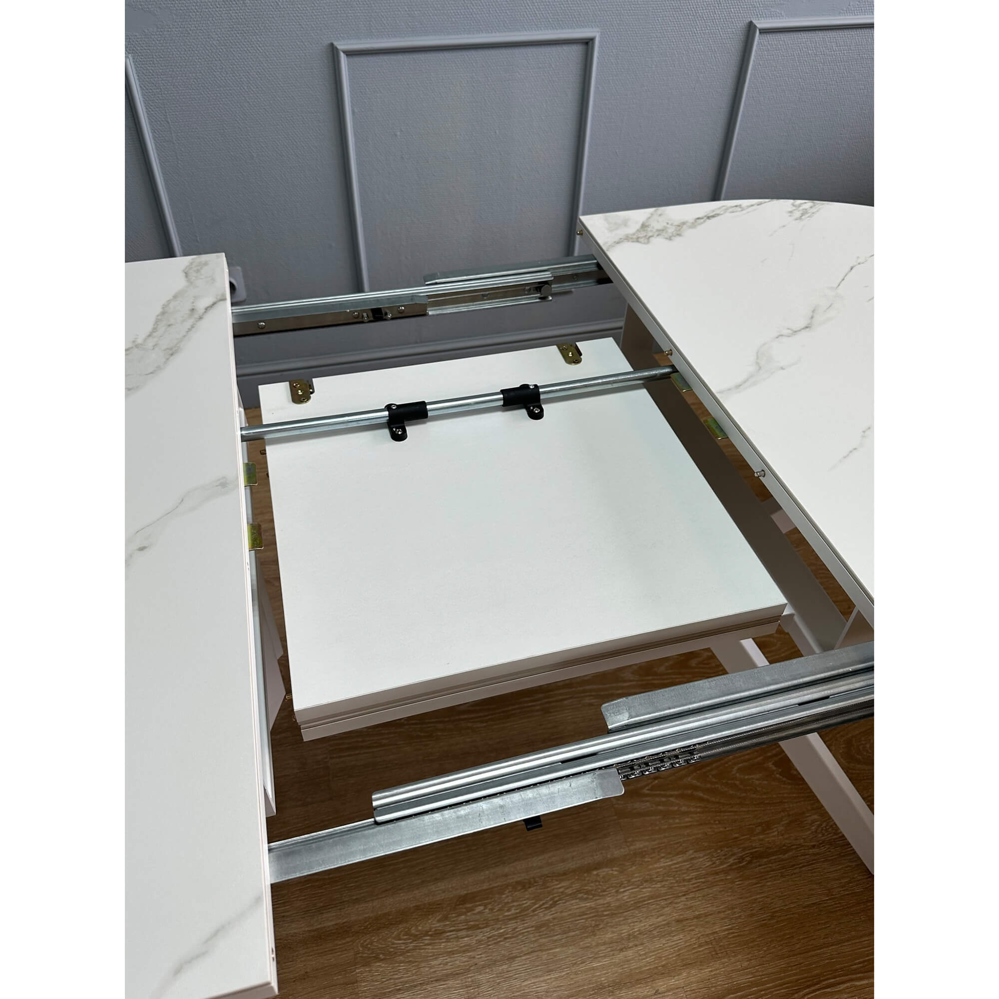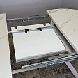 Основное преимущество в системе раскладки вместе с опорами. Опоры стола в разложенном виде не мешают сидеть, позволяют сделать большую вставку и, главное, столешница в разложенном состоянии так же крепка и надежна, как и в сложенном, тогда как обычно раскладка стола уменьшает устойчивость столешницы к нагрузкам из-за большего плеча.