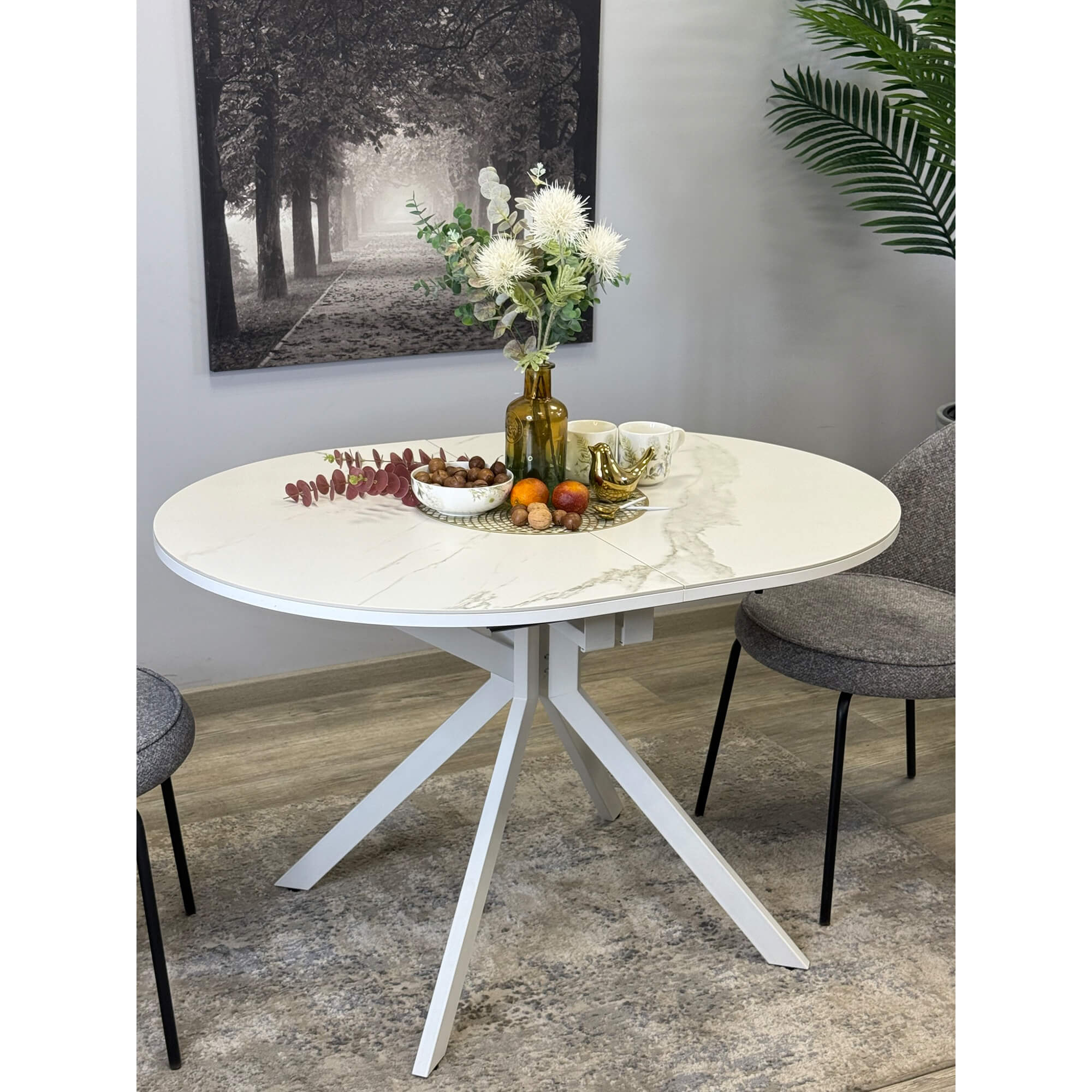 Стол с овальной столешницей, тонкими, но надежными опорами и самой удобной системой раздвижения. Овальная столешница размером 1200*900 оптимальна на большой кухне. Можно ставить вплотную к стене, легко размещается 6 чел в сложенном виде.
