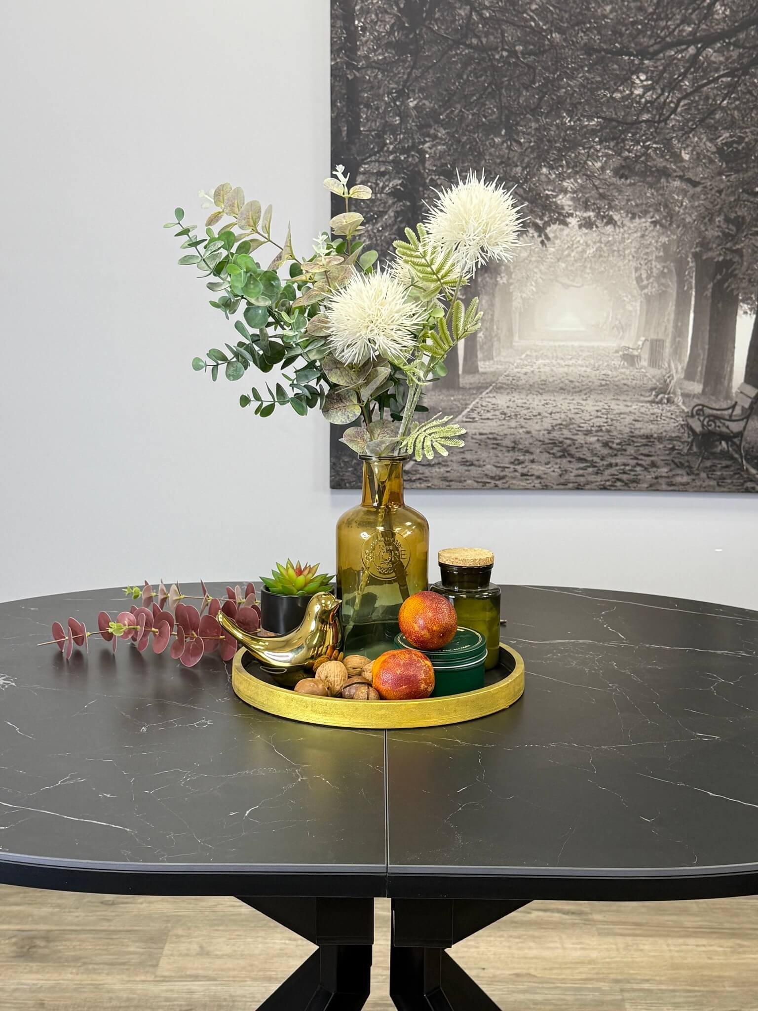 Стол обеденный Kenner DM1400 черный/керамика мрамор золотой