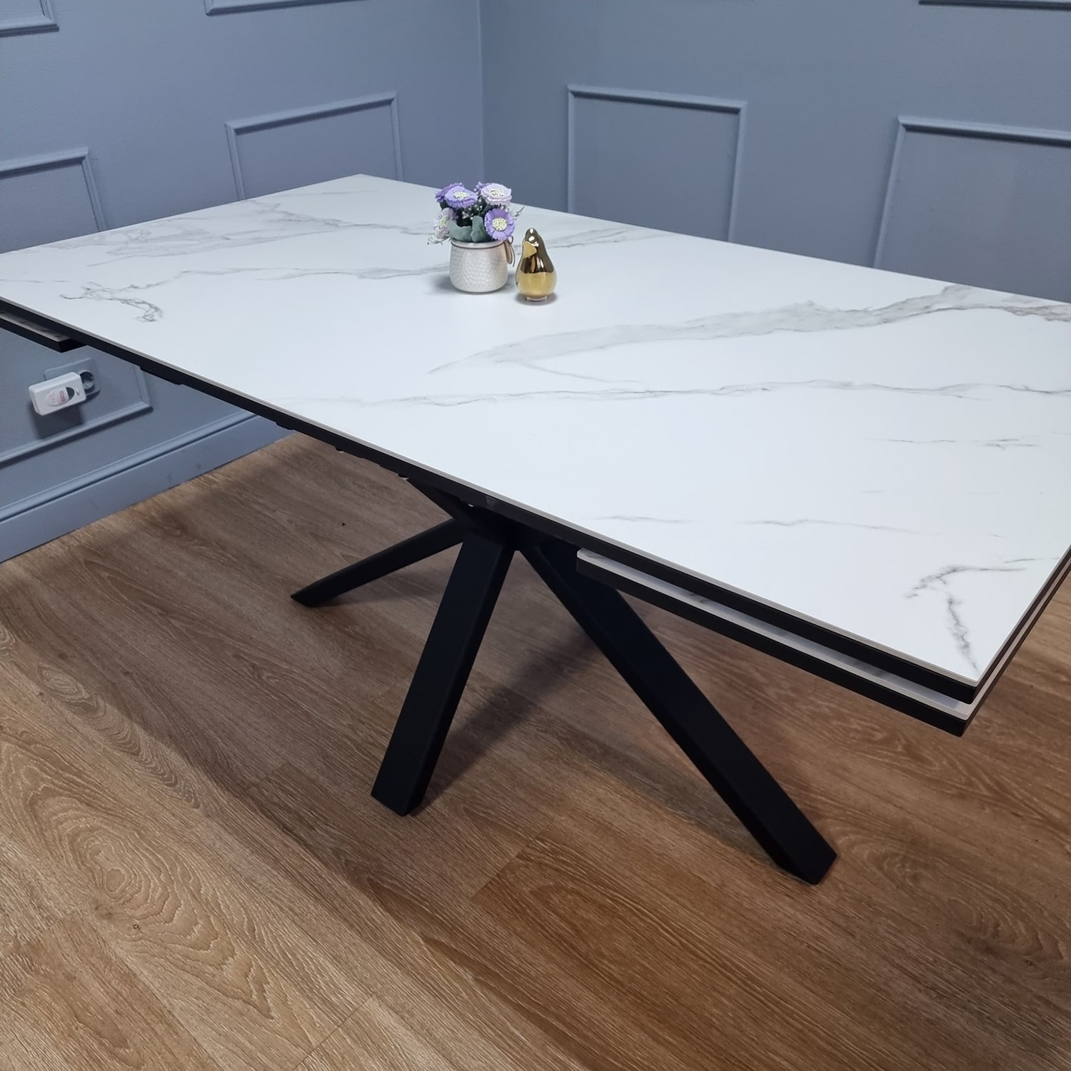 Габариты: 1600/2300х900х760 мм Материал: керамика на подложке из ЛДСП. Опоры: черный металл, покрытие - порошковая покраска, тонкий и надежный металлический профиль.