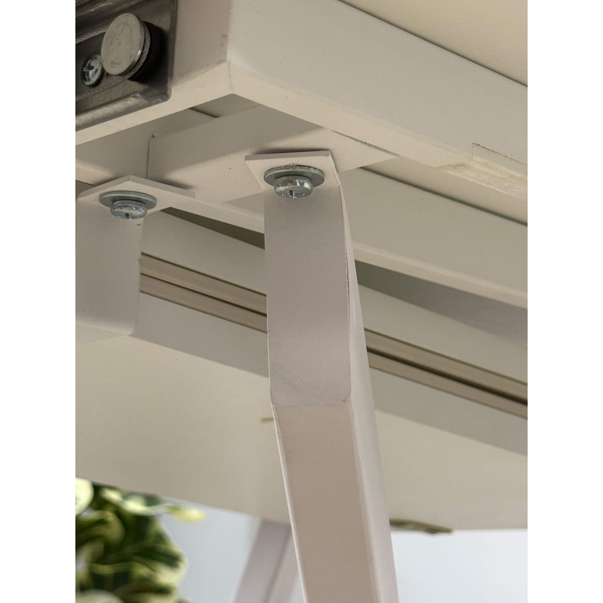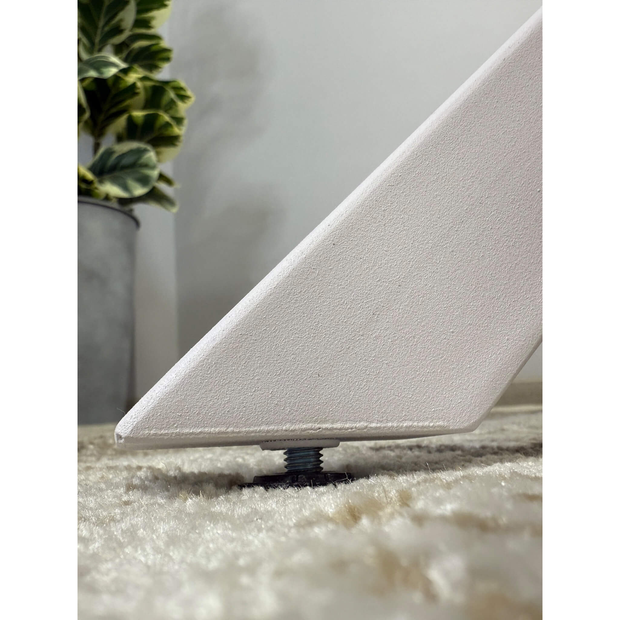 Центральное основание спроектировано так, чтобы не создавать помех при посадке. Столешница надежно закреплена и обеспечивает стабильность конструкции.