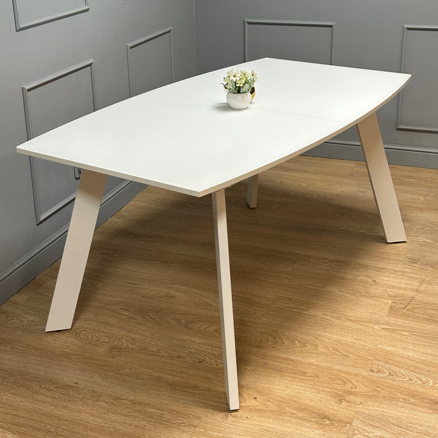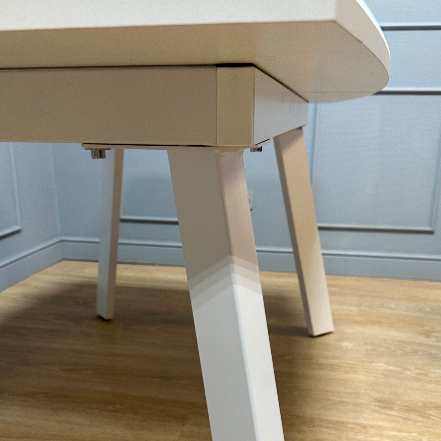 Стол выпускается в новом тонком дизайне, столешница пропорциональна толщине опор.