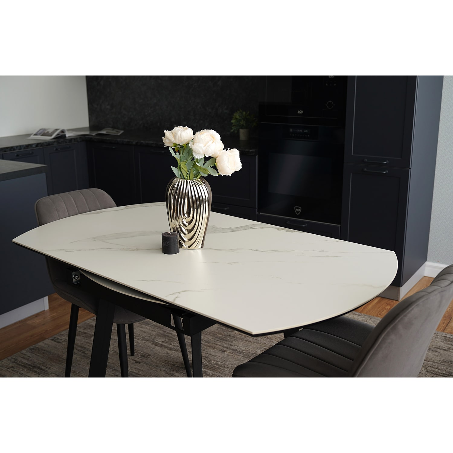 Стол из керамогранита и металла — это долговечно, стильно, современно.