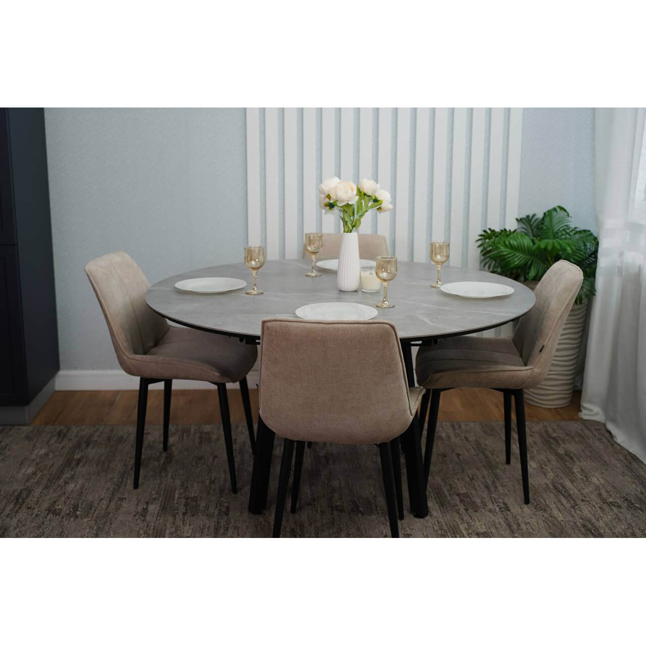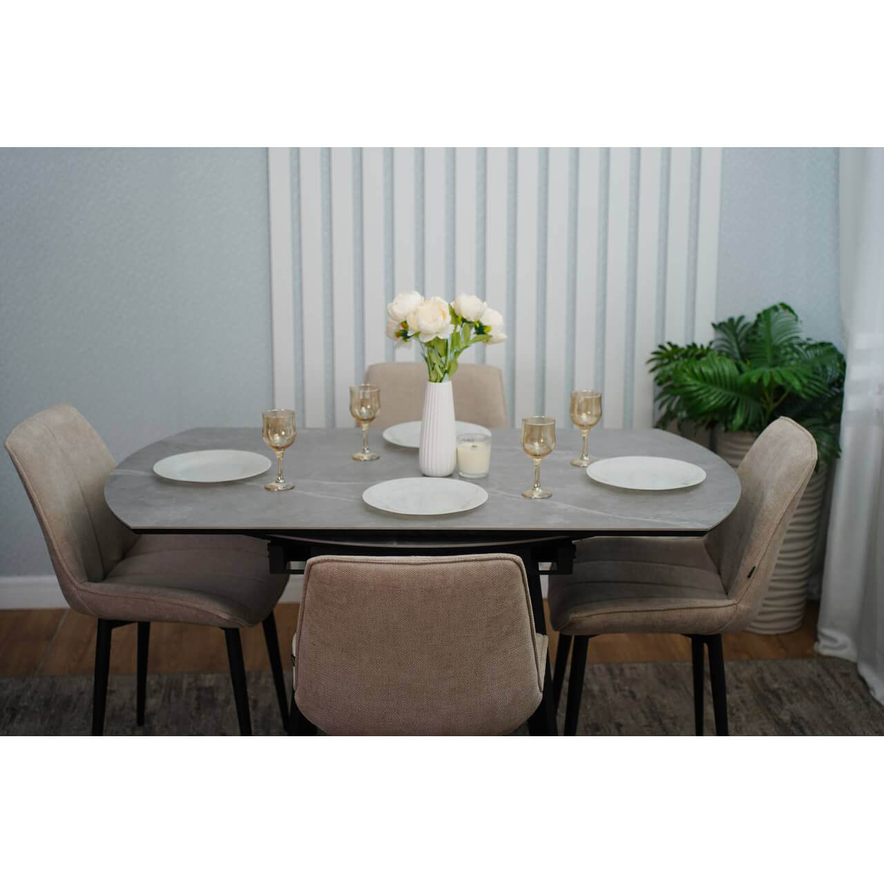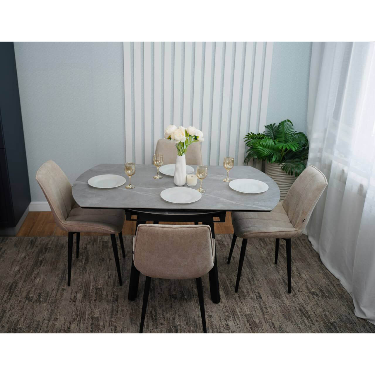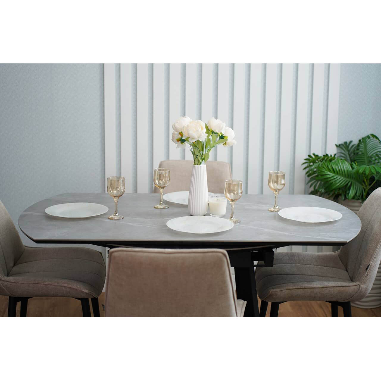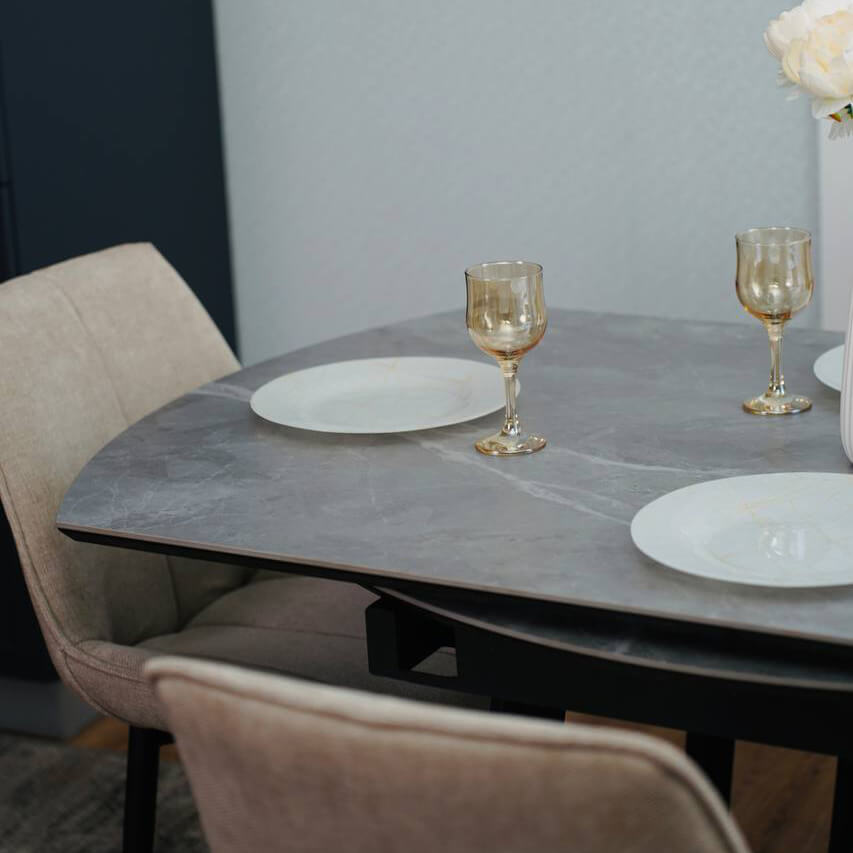 Стол из керамогранита и металла — это долговечно, стильно, современно.