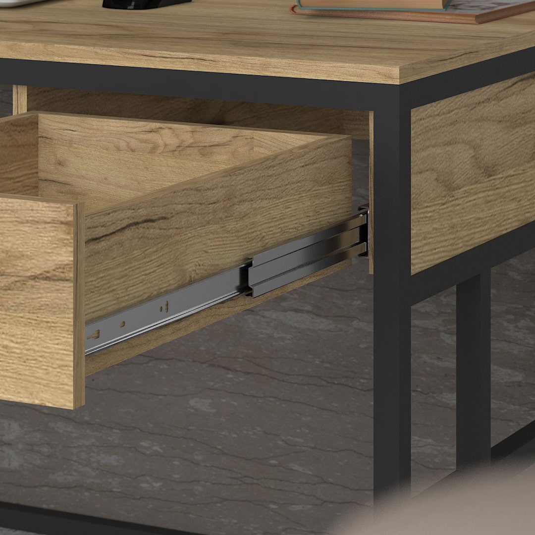 Каркас из проф. трубы 25х25 мм, покрытие черный муар, ЛДСП 16 мм дуб табачный.