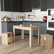 Стол оснащен четырьмя ножками из ЛДСП, что придает ему устойчивость и надежность. Высота стола составляет 72,6 см, а ширина - 60 см, что делает его удобным для размещения различных блюд и напитков.