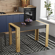 Стол выполнен в современном стиле, сочетающем в себе золотистые и черные оттенки, имитирующие цвет дуба артизан. Прямоугольная форма и золотистые ножки придают ему неповторимый шарм и элегантность.