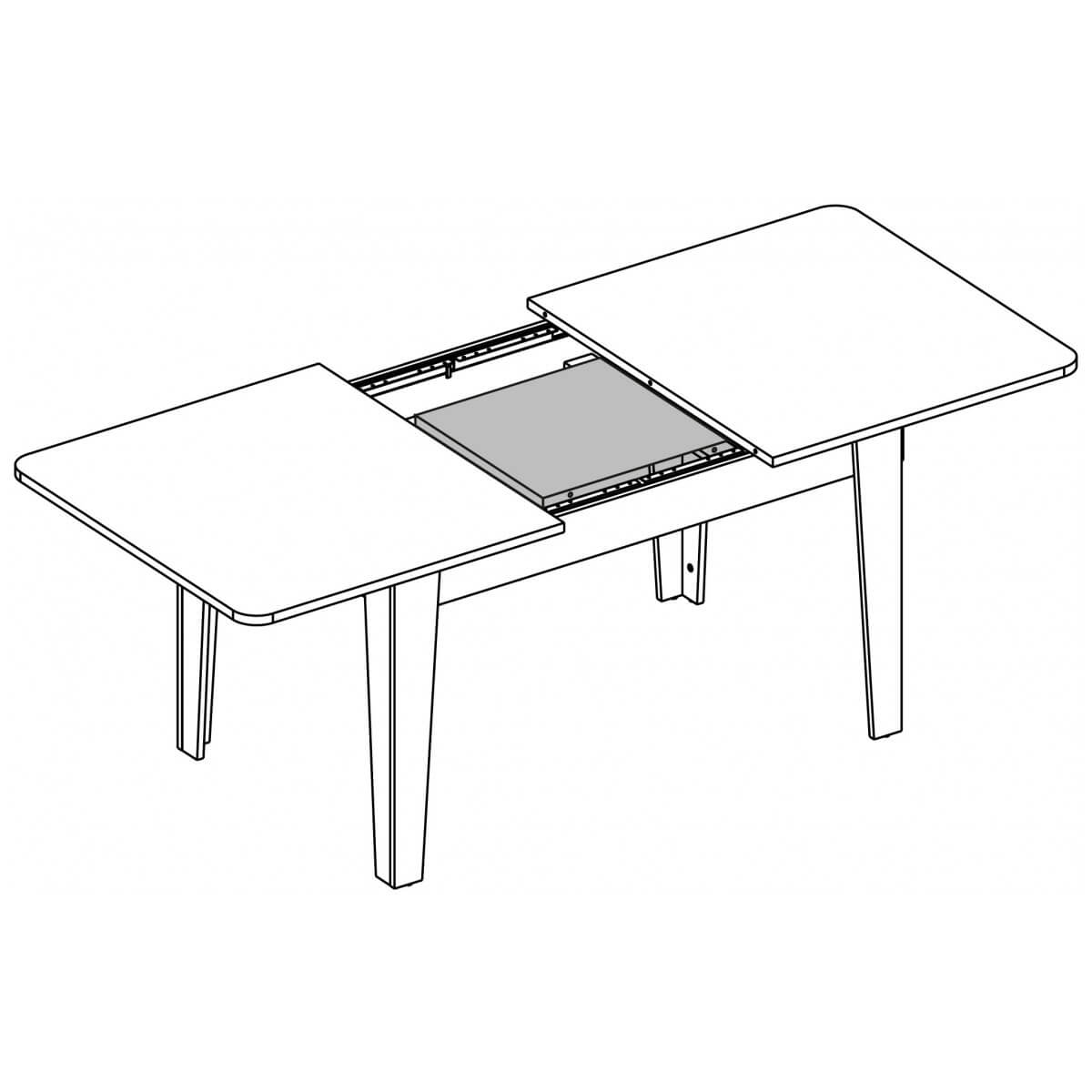 Стол раздвижной B OLIVIA. Стол раздвижной B OLIVIA отличается от стола раздвижного OLIVIA большей шириной и глубиной. Конструкция элемента представляет собой столешницу из двух частей прямоугольной формы, под столешницей имеется отсек для хранения дополнительной детали, которая при необходимости вставляется между двумя частями столешницы для увеличения обеденного пространства. Расположение угловых ножек (4 шт.) даёт возможность удобно разместить стулья возле стола.