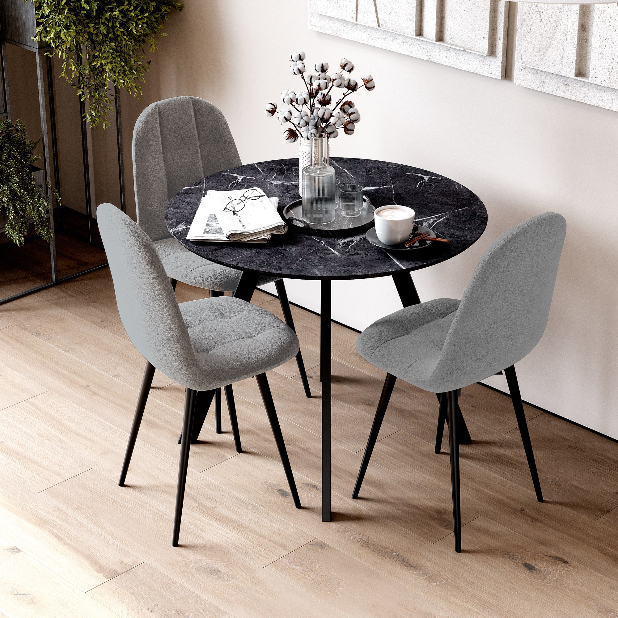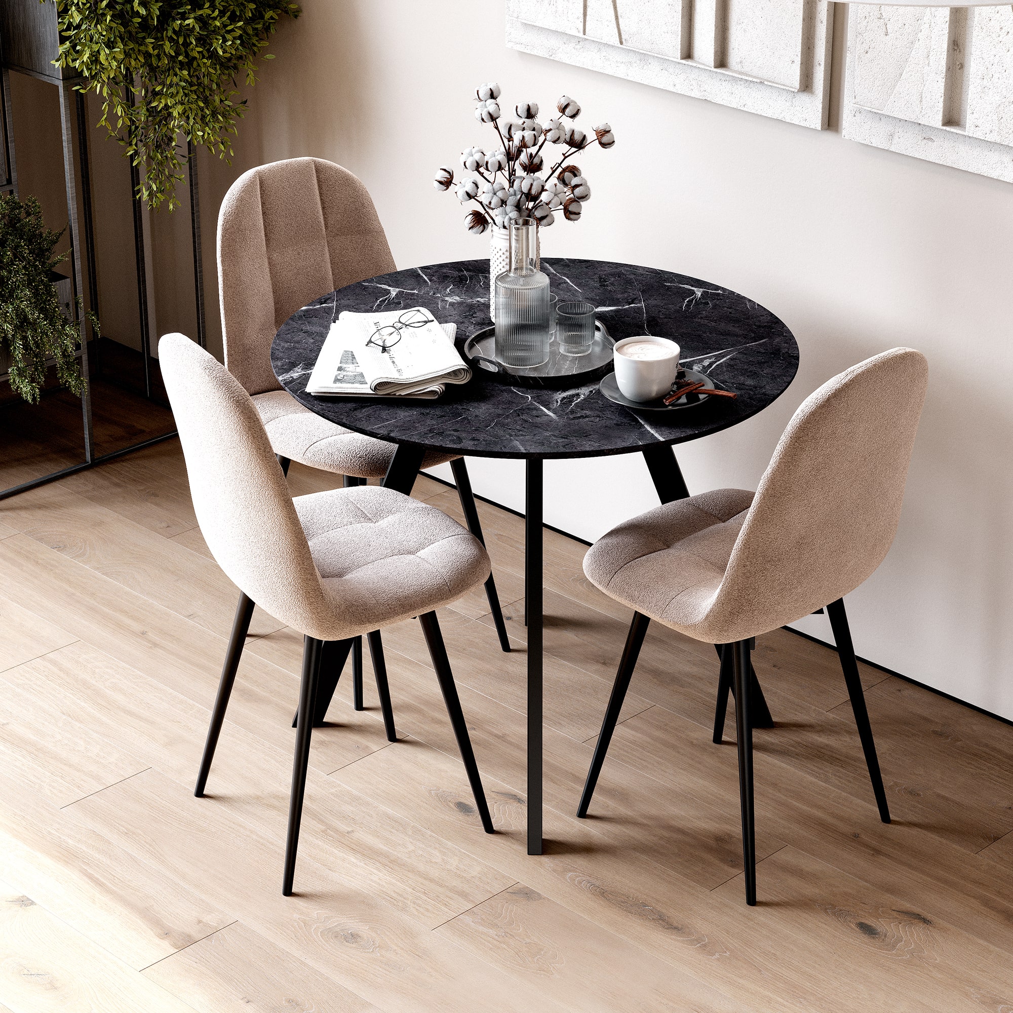 Обеденный стол “Вивальди 4” выполнен в классическом стиле в цвете "Мрамор Анкара". Круглая форма делает его идеальным для размещения в центре комнаты и обеспечивает комфорт для всех гостей. Опоры из профильной трубы прямоугольного сечения 50х25 см, покрытые порошковой краской, придают столу элегантность и утонченность.