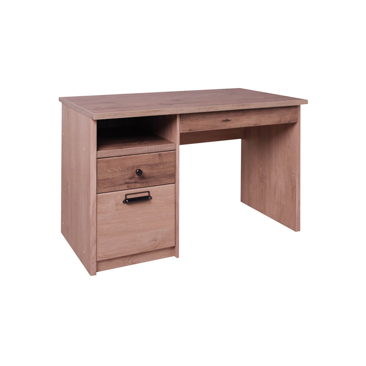 Стол 1D2SN DIESEL – организация рабочей и учебной зоны в интерьере молодёжной комнаты. Сочетание используемых цветов плиты прекрасно подчеркнёт оригинальность помещения. Стол 1D2SN DIESEL имеет прямую конструкцию. Конструкция элемента представляет собой столешницу прямоугольной формы, один выдвижной ящик под столешницей, тумбу (расположение слева) с открытой нишей (N) и одним выдвижным ящиком, нишей за глухой дверью (1D), правую опору и заднюю панель. Дверь распашная, крепится на петли к боковому корпусу изделия.