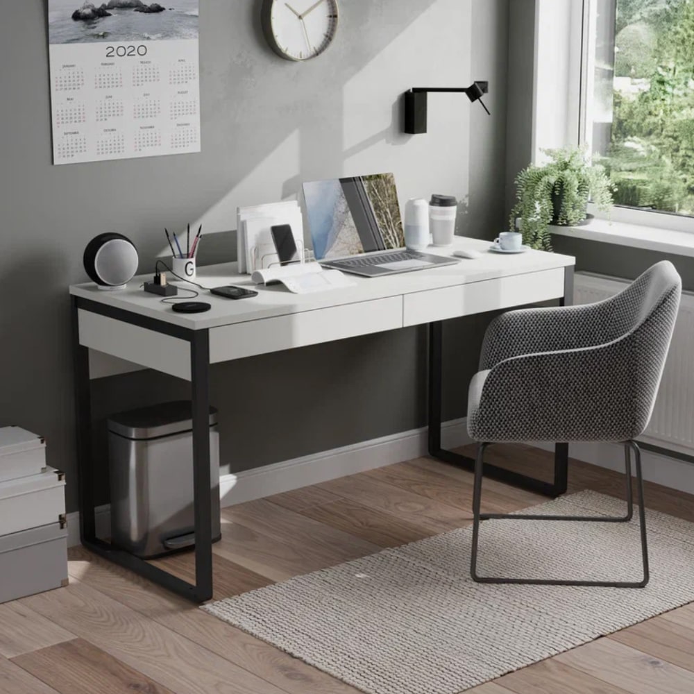 Каркас из проф. трубы 40х20 мм, покрытие черный муар, ЛДСП 16 мм белый шагрень, кромка белый шагрень, комплект направляющих 500мм.
