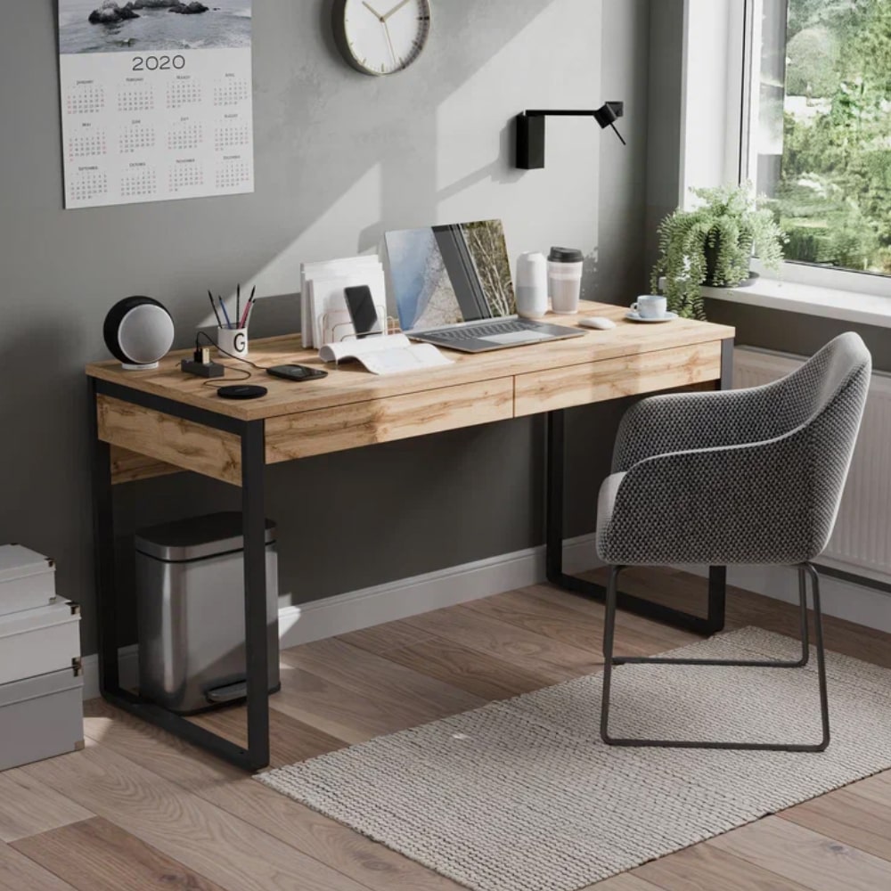 Каркас из проф. трубы 40х20 мм, покрытие черный муар, ЛДСП 16 мм дуб табачный, кромка дуб табачный.