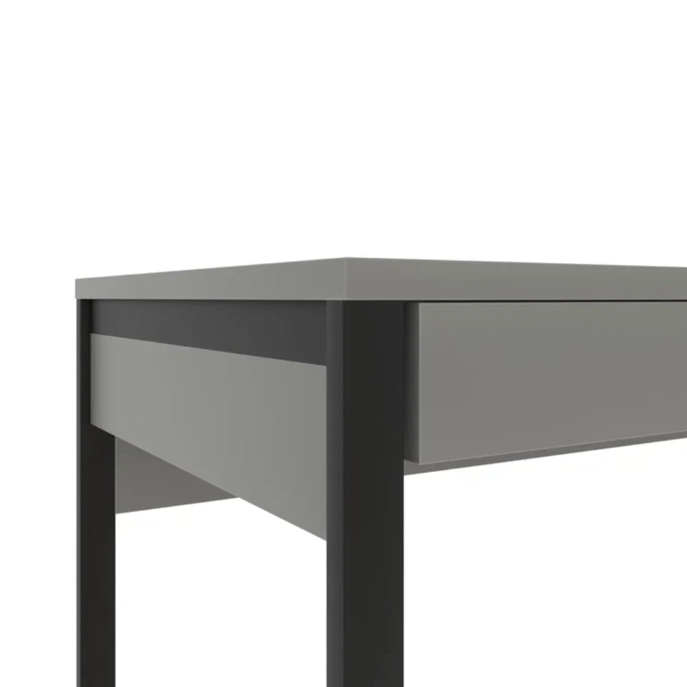 Каркас стола выполнен из профильной трубы 40х20 мм с покрытием черный муар. Это обеспечивает высокую прочность и долговечность конструкции. Столешница изготовлена из ЛДСП толщиной 16 мм и имеет цвет серый графит с кромкой того же цвета. Это придает столу элегантный и современный вид.