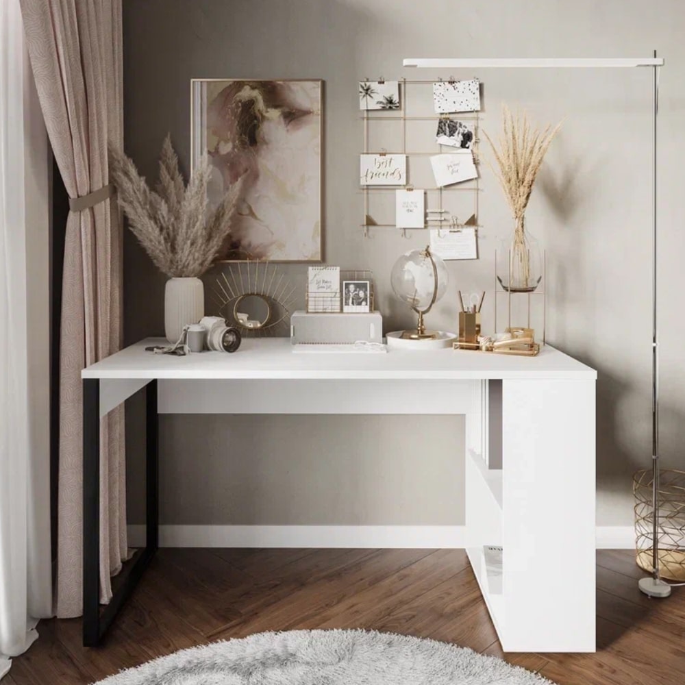 Каркас из проф. трубы 40х20 мм, покрытие черный муар, ЛДСП 16 мм белый шагрень, кромка белый шагрень.