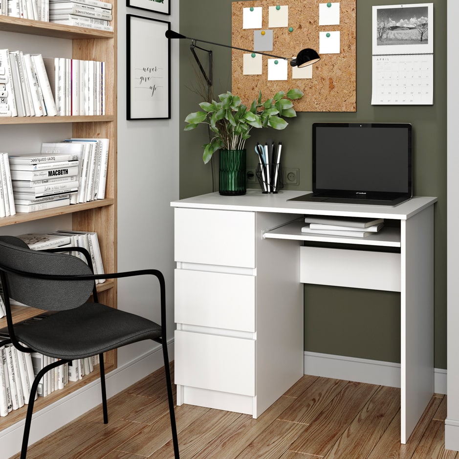 Стол письменный Мори 3 ящика Белый левый