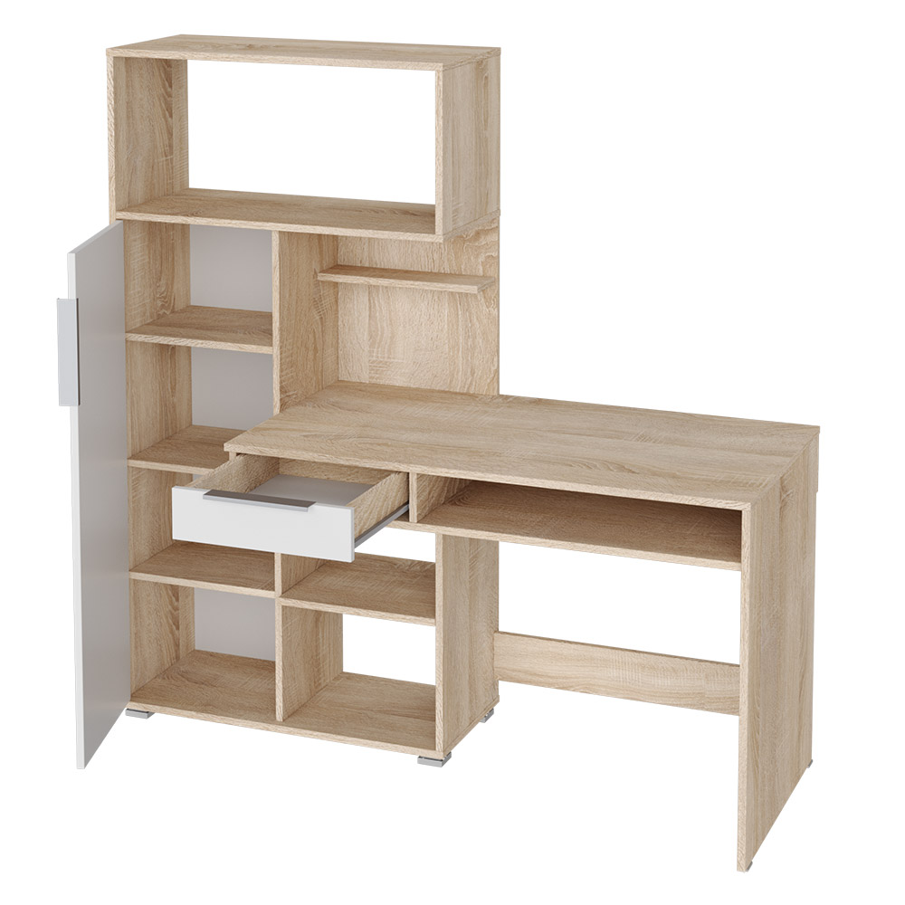 Письменный стол "НК КВАДРО" - это современное и стильное решение для организации рабочего пространства в комнате. Стол выполнен в цвете дуб сонома/белый, что позволяет ему гармонично вписаться в любой интерьер.