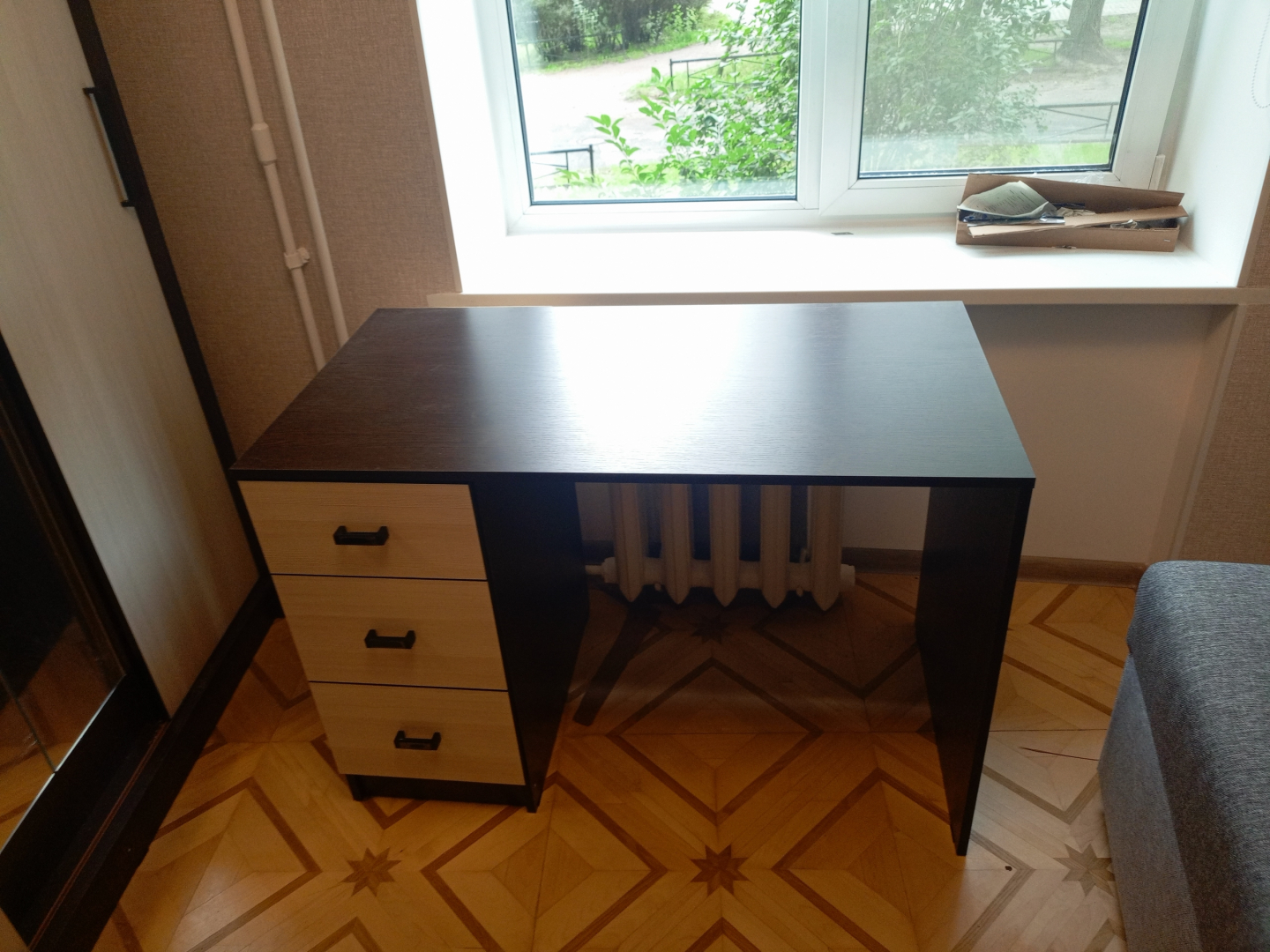 Стол оснащен тремя выдвижными ящиками на роликовых направляющих. Они не только придает столу эстетический вид, но и служит местом для хранения различных предметов.