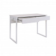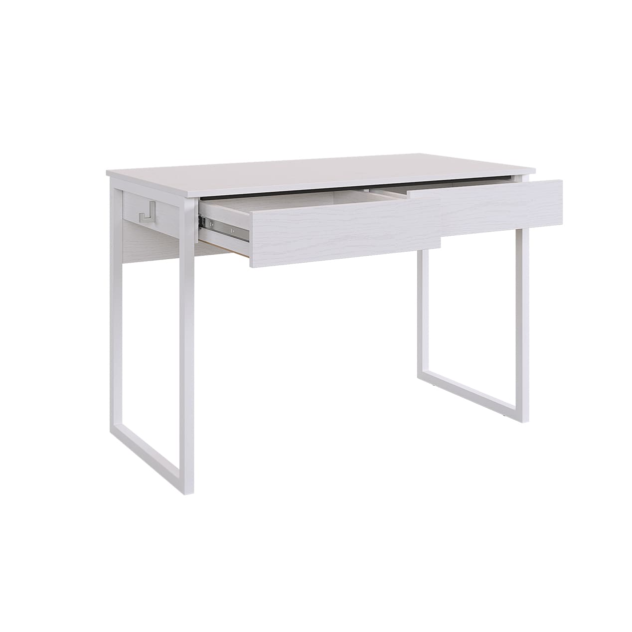 Стол на металлических опорах с двумя выкатными ящиками на шариковых направляющих, усиленный и надежный каркас, благодаря металлическому ребру жесткости под столешницей,будет стильным акцентов в комнате. Крючок на боковой стенке стола будет полезным дополнением для рюкзака или наушников.
