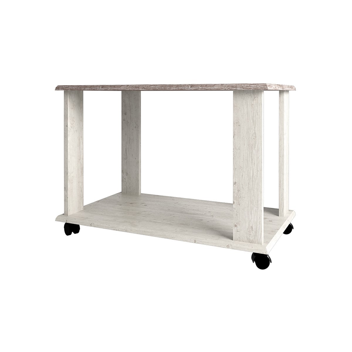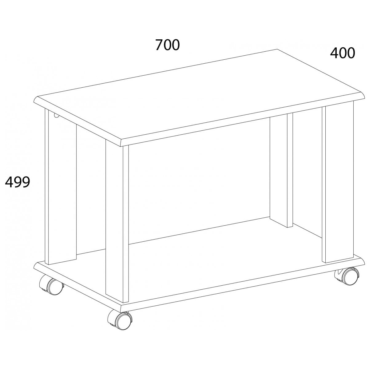 Стол журнальный L Монако – мобильный предмет мебели широкого назначения в интерьере: удобен в использовании для хранения прессы и книг, для организации чаепития, подачи блюд к основному обеденному столу, а является замечательным дополнением интерьера с предметами декора. Конструкция стола журнального L представляет собой столешницу и полку под ней прямоугольной формы, которые соединены между собой планками из ЛДСП (4 шт.), элемент устанавливается на колёсики (4 шт.).