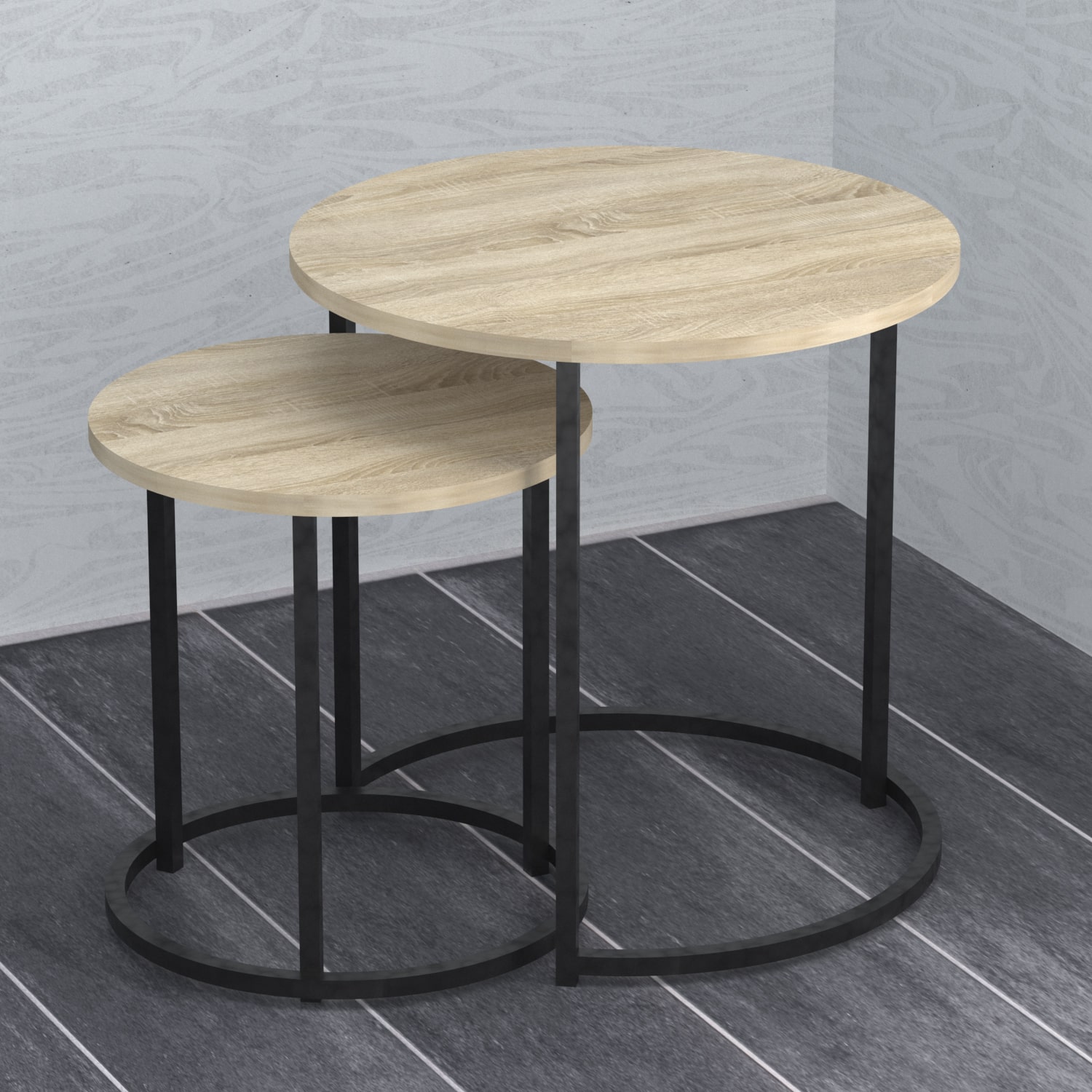 Размеры: 500х500х500 (большой), 370х370х384 (маленький), столешница ЛДСП 16 мм Дуб сонома светлый, металлический каркас 15х15 мм порошковое покрытие Муар черный, пластиковые заглушки.