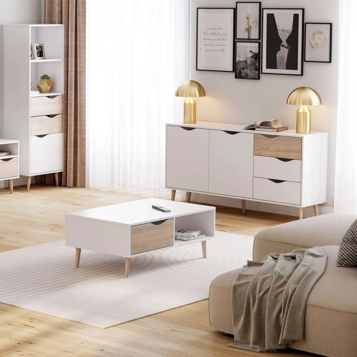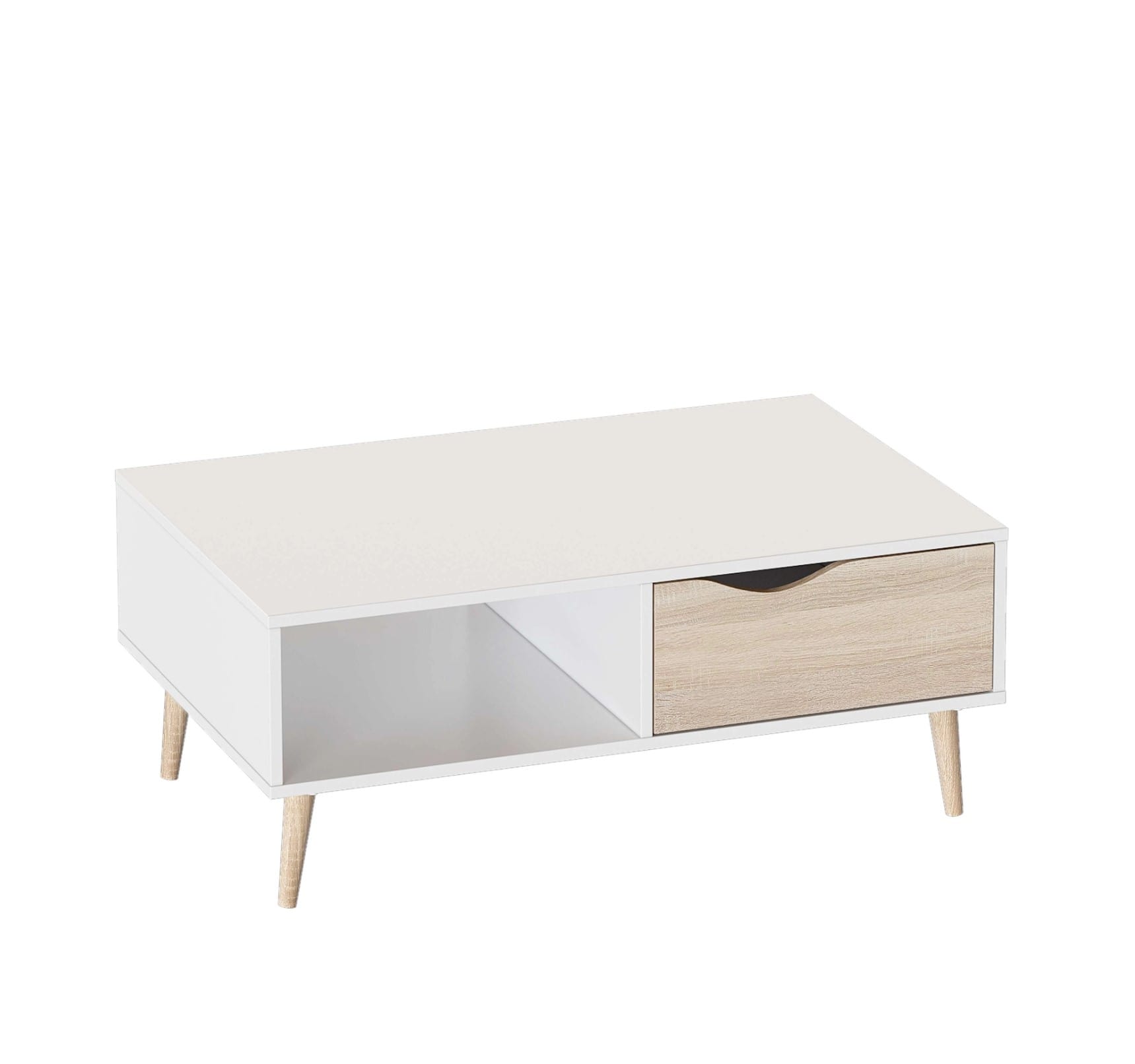 Журнальный стол «Соната» — идеальное сочетание простоты, натуральности и скандинавского стиля. Его прямоугольная столешница и дно соединены непроходными стенками, что придаёт столу элегантный вид. Стол разделён на два отделения: открытое и с ящиком, который декорирован вырезной ручкой и может выдвигаться в обе стороны стола. Войлочные подпятники обеспечивают мягкое скольжение ящика по дну стола.