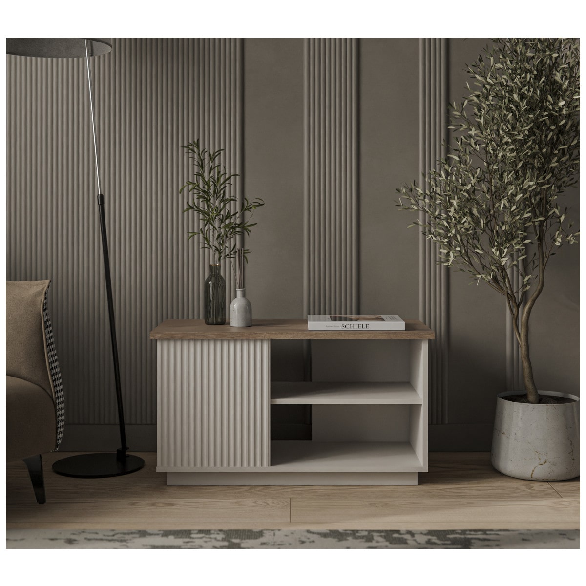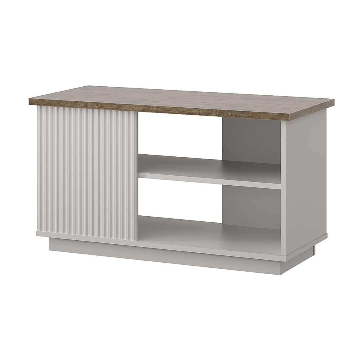 Декор в виде рифленой поверхности на фасаде подчеркивает особенность дизайна коллекции. Добавьте сюда подсветку, украсьте памятными сувенирами, семейными фотографиями и Ваш интерьер засияет поистине новыми красками.