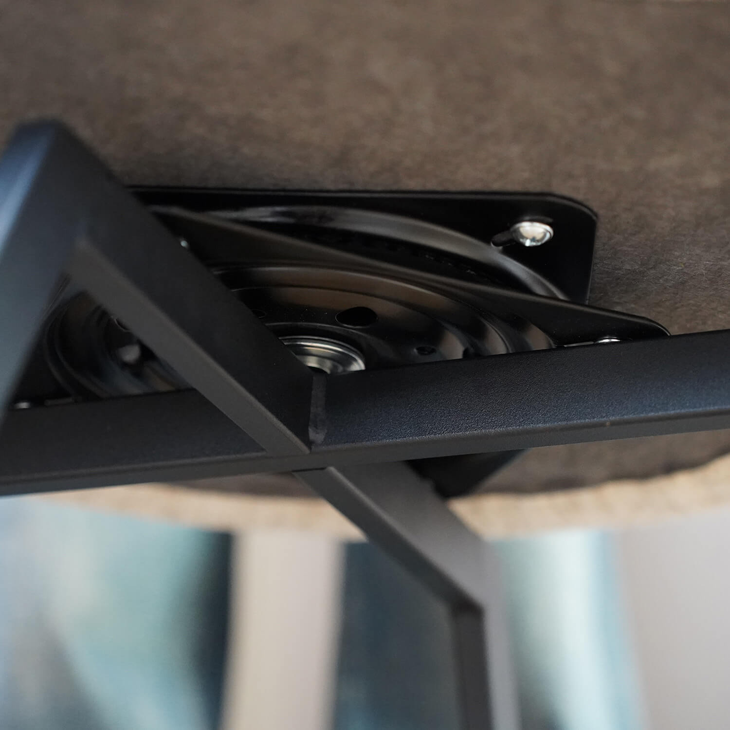 Для максимальной долговечности и надёжности мы использовали основание из березовой фанеры, которое обеспечивает комфортную посадку, а цельносварная металлическая опора из высококачественной трубы гарантирует устойчивость и прочность стула.