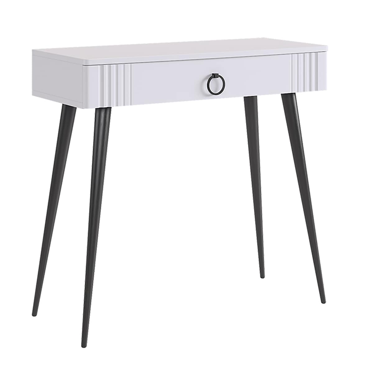 Туалетный столик "Ева 2" – это элегантное и функциональное решение для вашей спальни. Шариковые направляющие на ящике обеспечивают плавное открывание и закрывание. Устойчивые черные опоры добавляют стиля столику.