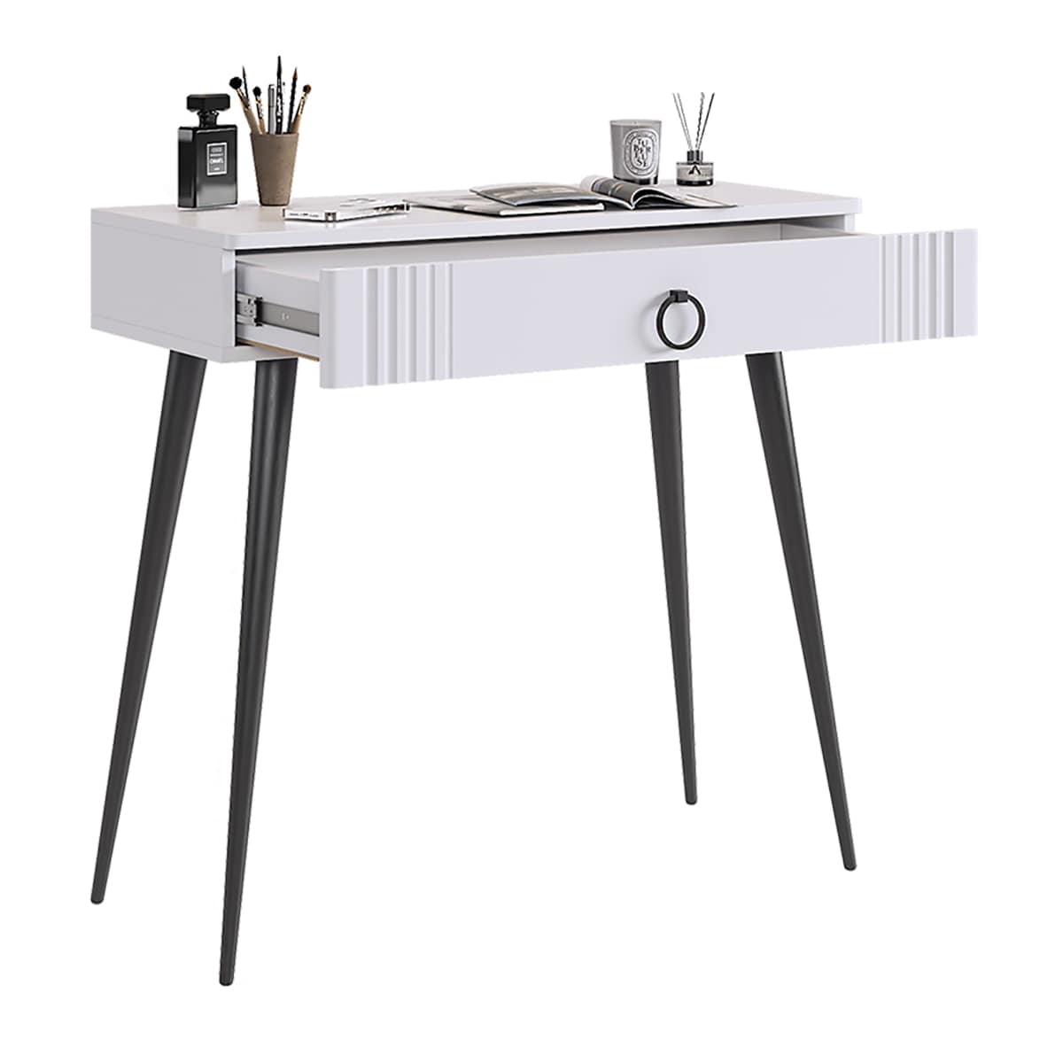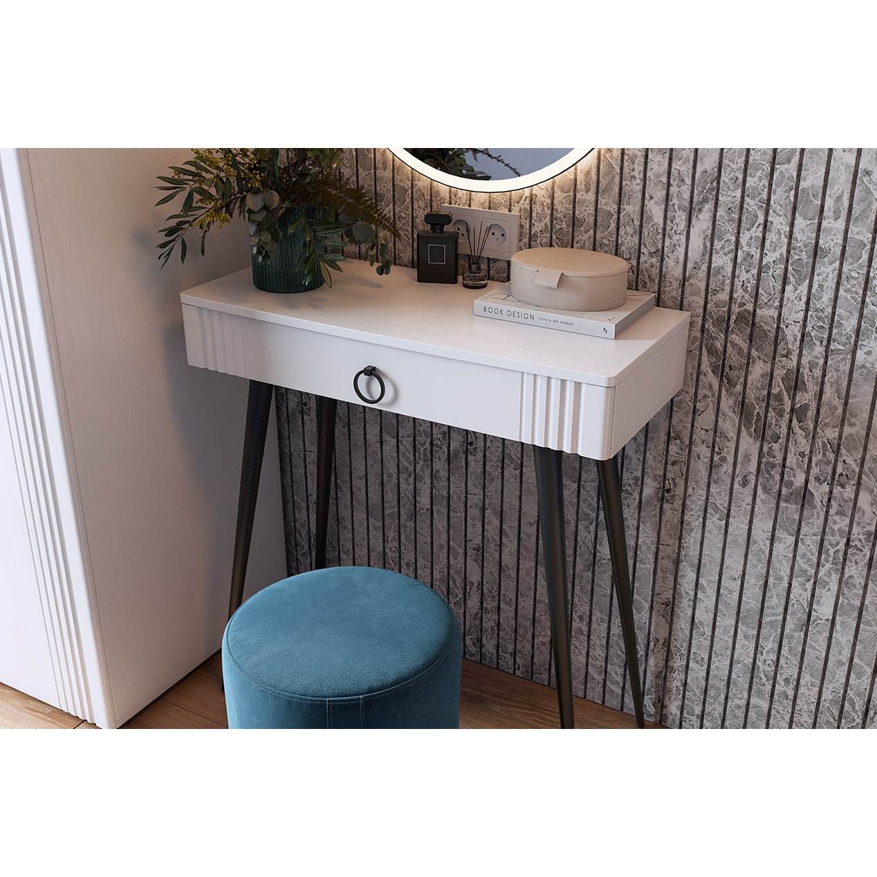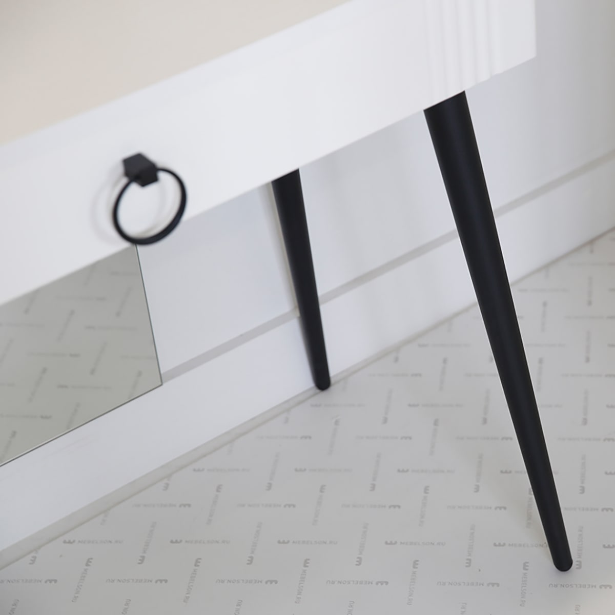 Металлические ручки дополняют общий дизайн, придавая ему эстетичный и современный вид. Сочетание черного и белого цветов делает этот туалетный столик универсальным и легко вписывающимся в любой интерьер.