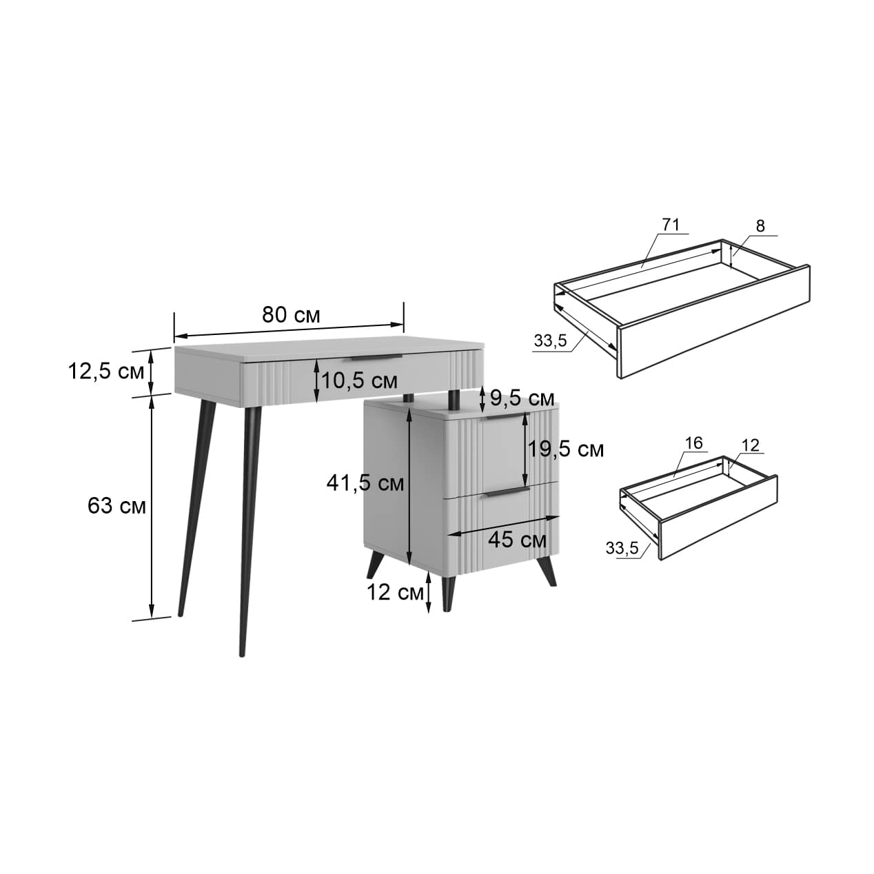 Туалетный столик «Катрин М» станет стильным дополнением к вашей спальне и предоставит удобное место для хранения вещей, а также может использоваться как письменный стол.
