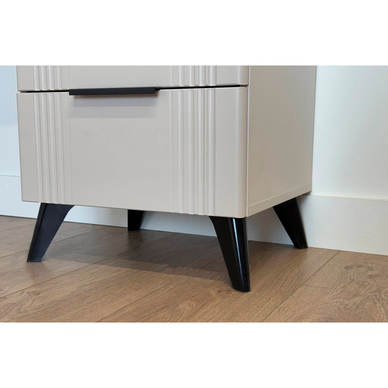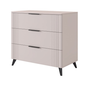 Трюмо изготовлено из качественных материалов: корпус выполнен из ЛДСП, что гарантирует прочность и долговечность, а фасад из МДФ в плёнке ПВХ не только выглядит эстетично, но и защищает трюмо от повреждений. Особое внимание заслуживает фрезеровка фасадов, которая придаёт изделию изысканный вид.