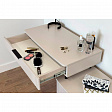 Благодаря своему дизайну трюмо «Катрин М» легко впишется в любой интерьер и гармонично сочетается с другими модулями спальни «Катрин М». Выкатные ящики предоставляют достаточно места для хранения различных предметов, а возможность использования трюмо в качестве письменного стола делает его универсальным элементом мебели.