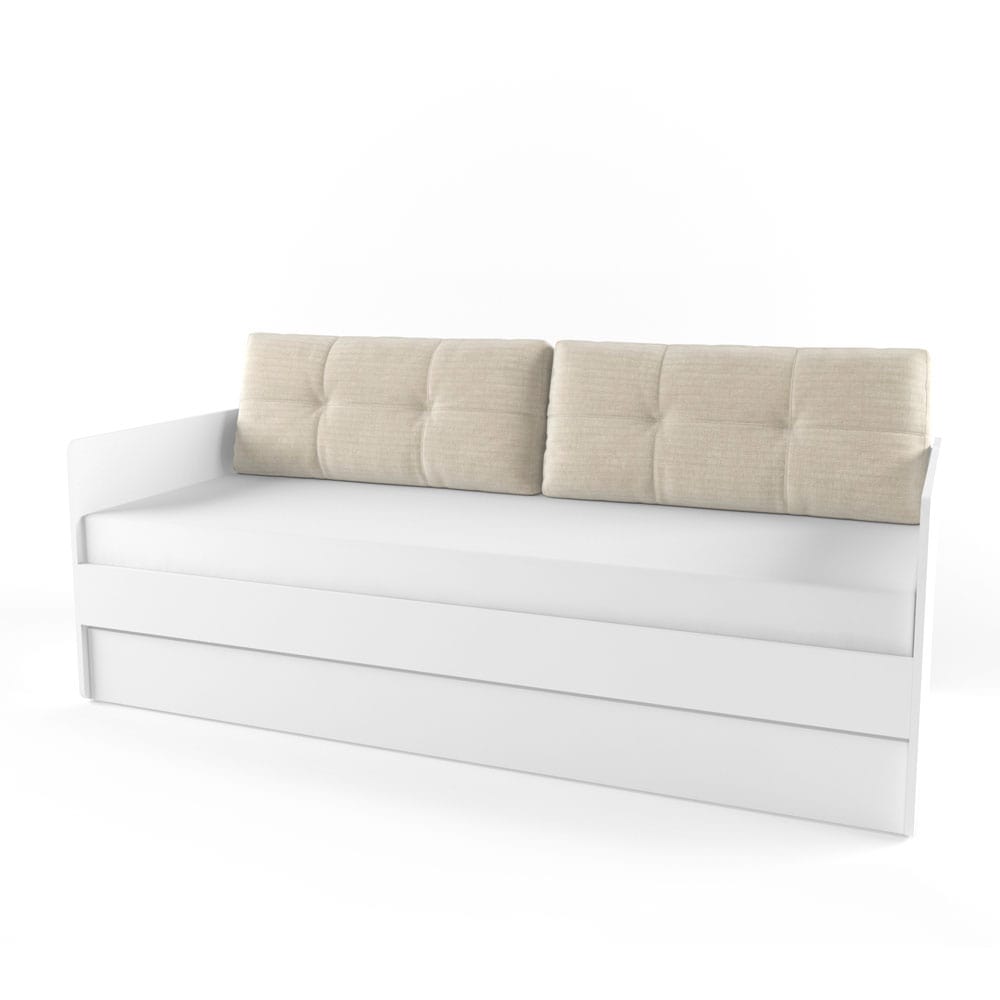 Сочетание яркого наматрасника и подушек превратит кровать в уютный диван.