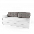 Сочетание яркого наматрасника и подушек превратит кровать в уютный диван.