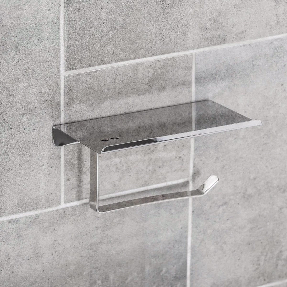 Бумагодержатель с полкой для мобильного телефона, нержавеюшая сталь, зеркальная.