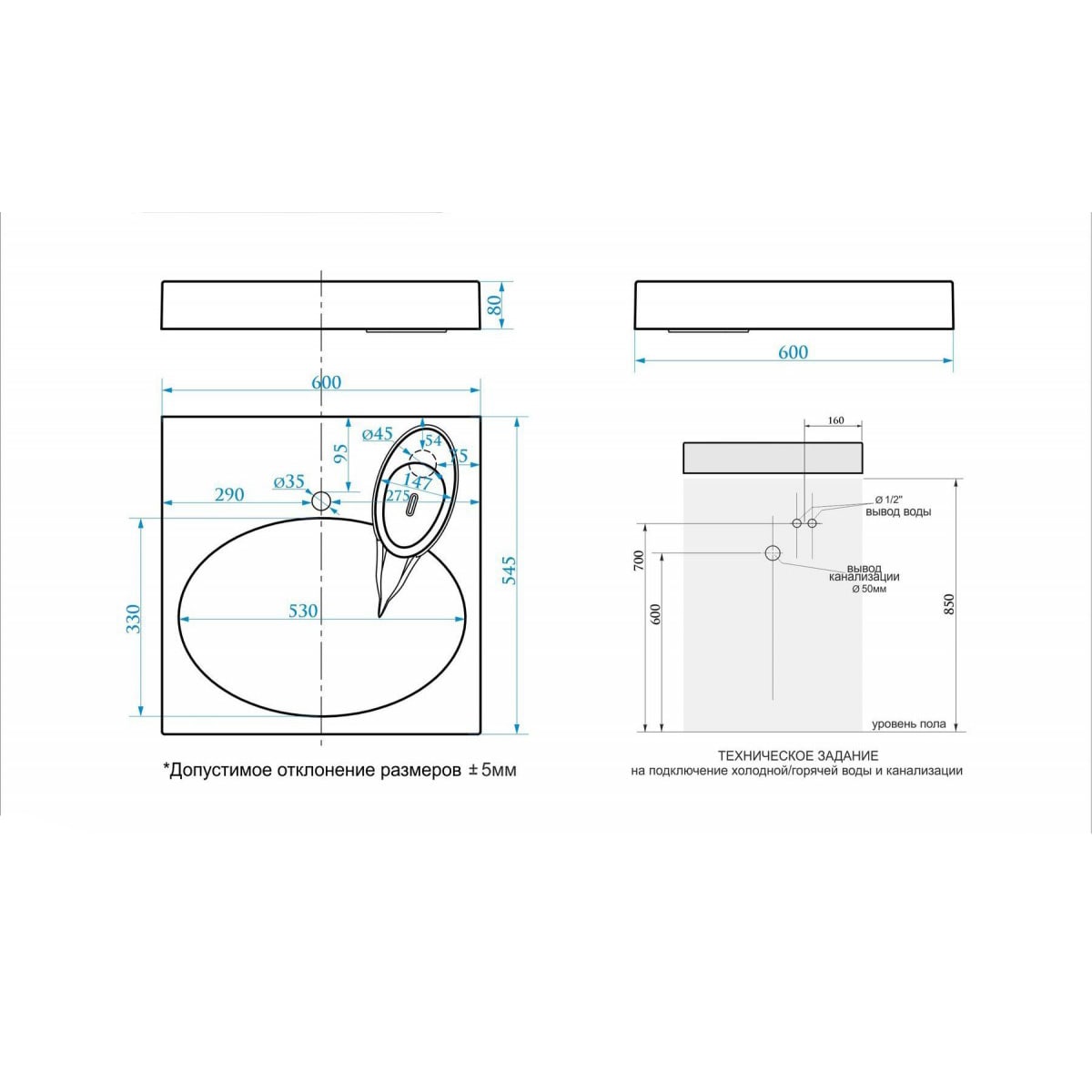Раковина устанавливается на кронштейны над стиральной машиной (нельзя монтировать на столешницу стиральной машины).