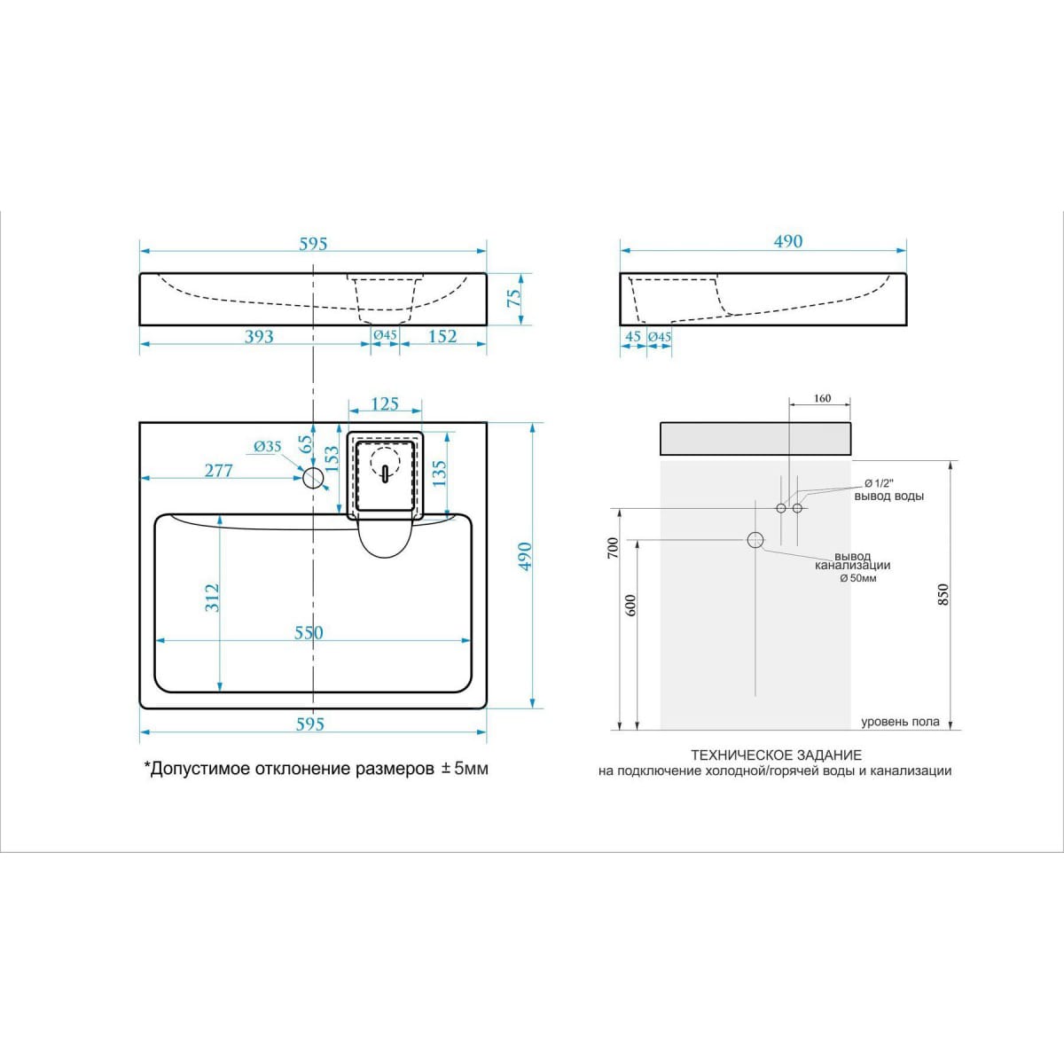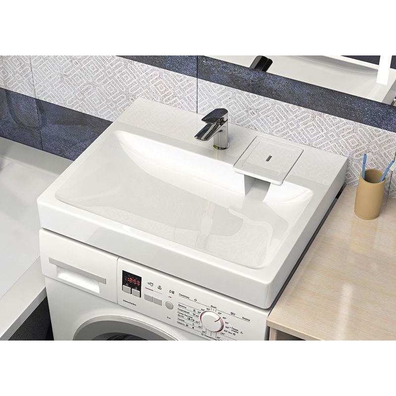 Раковина устанавливается на кронштейны над стиральной машиной (нельзя монтировать на столешницу стиральной машины).