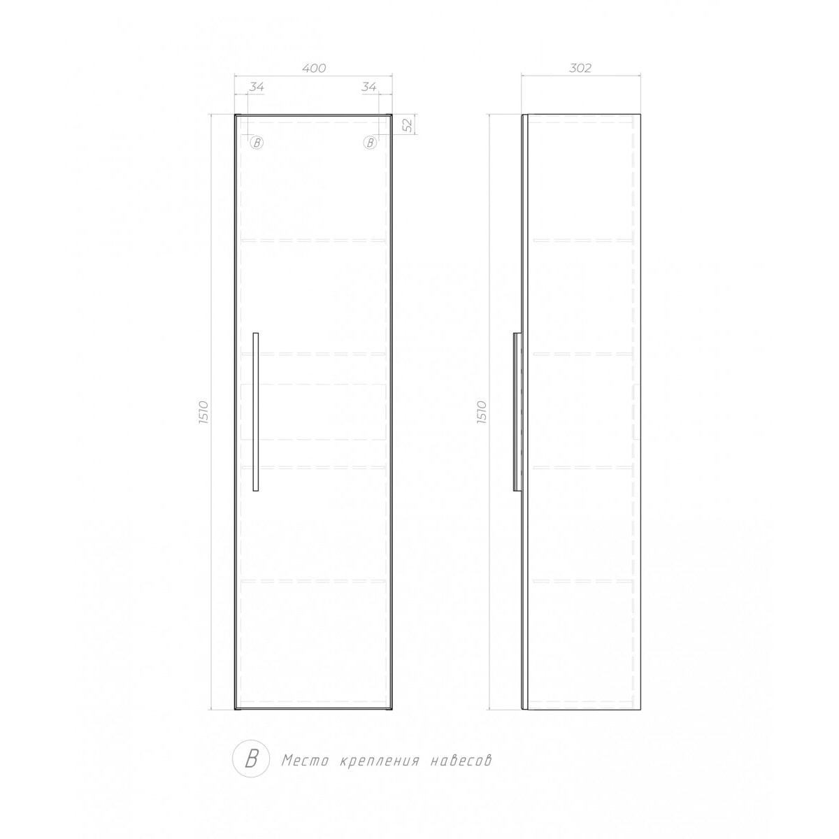 Оснащение: 1 дверца, 4 стеклянные полки, ручка металлическая хромированная.