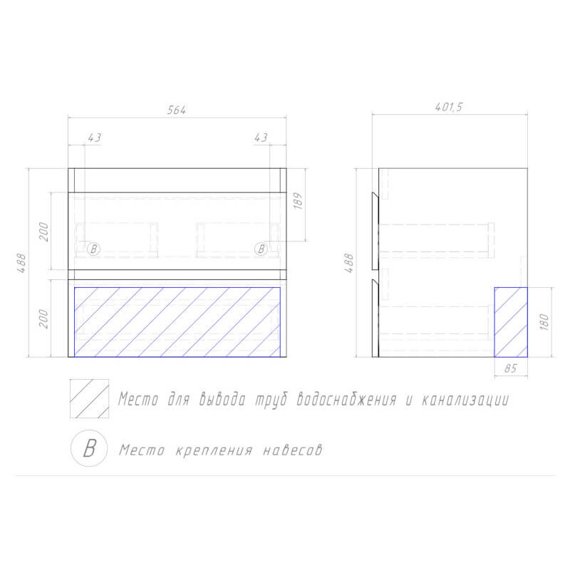 Оснащение: 2 выдвижных ящика, направляющие скрытого монтажа, 2 навеса.