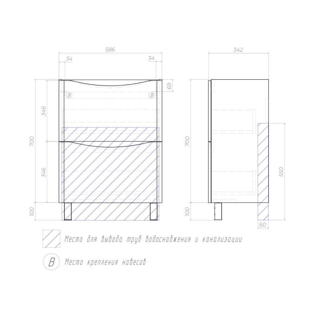 Оснащение: 2 ящика, сифон.