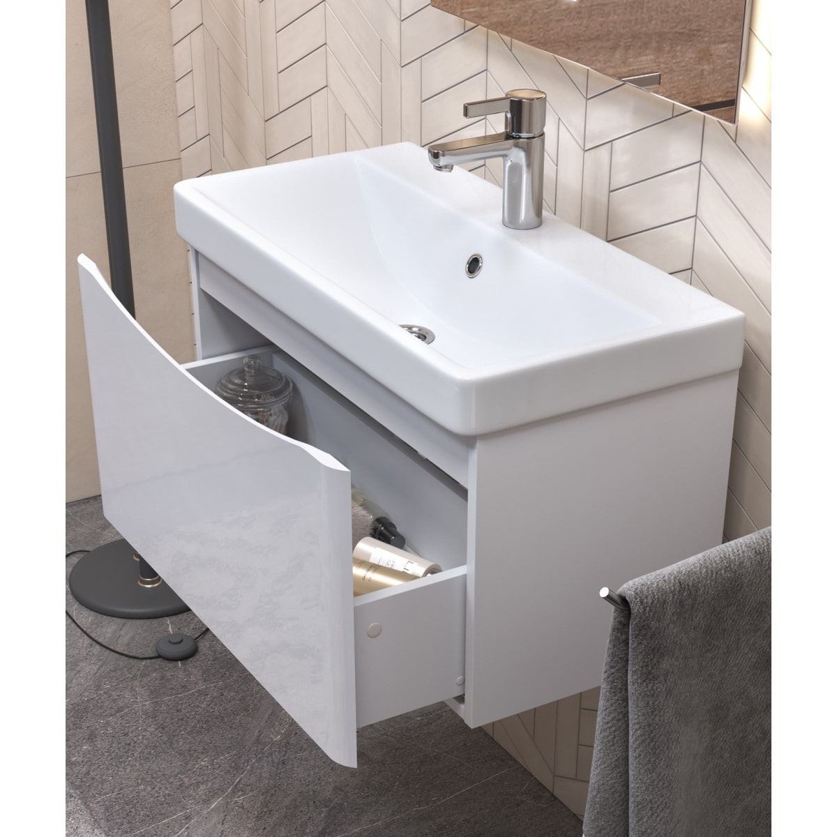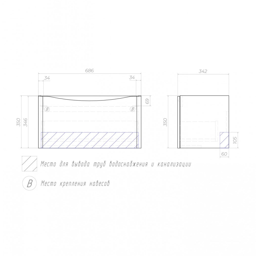 Тумба под раковину Glem 700-0-2 (9595) навесная + Раковина керамическая модель 9595(70)