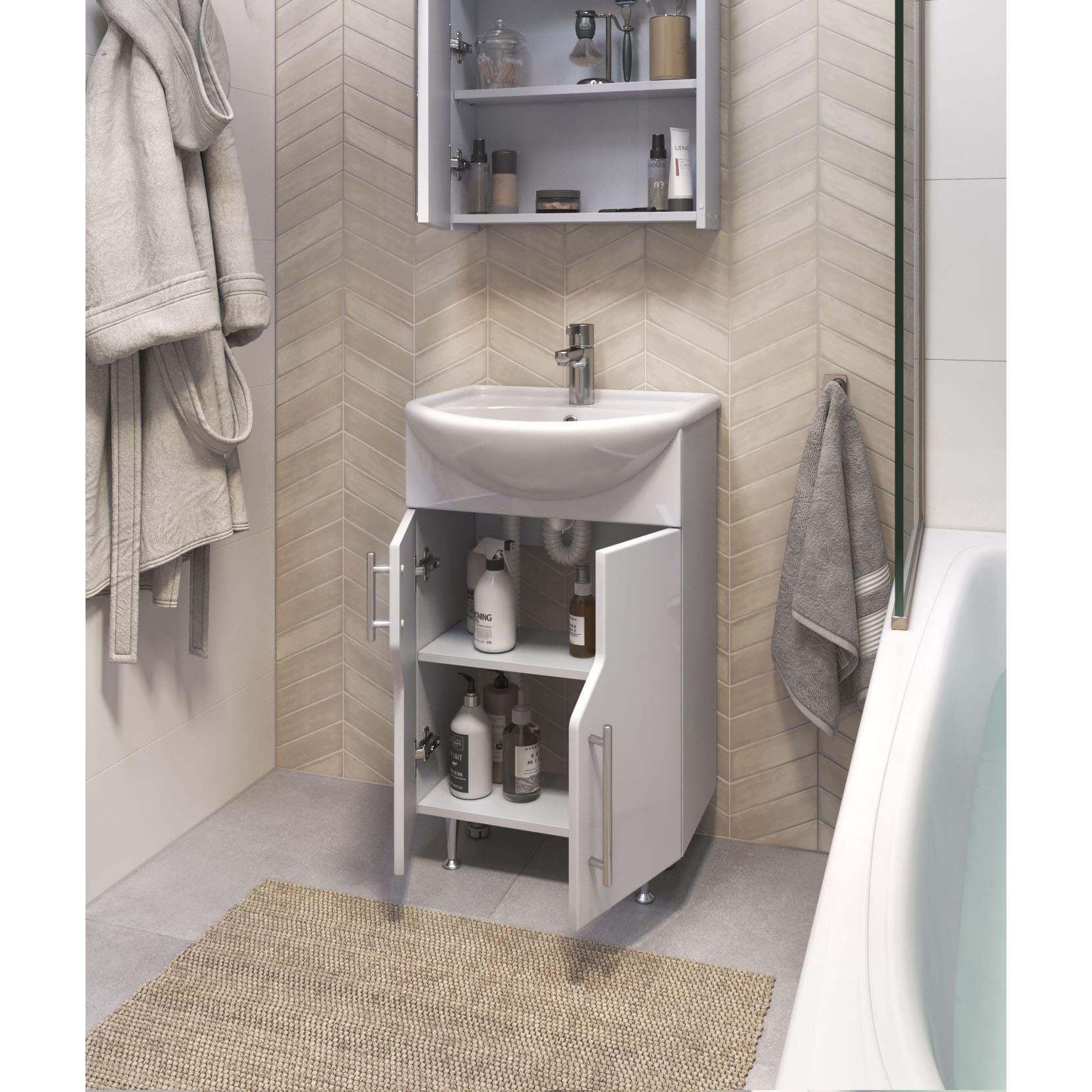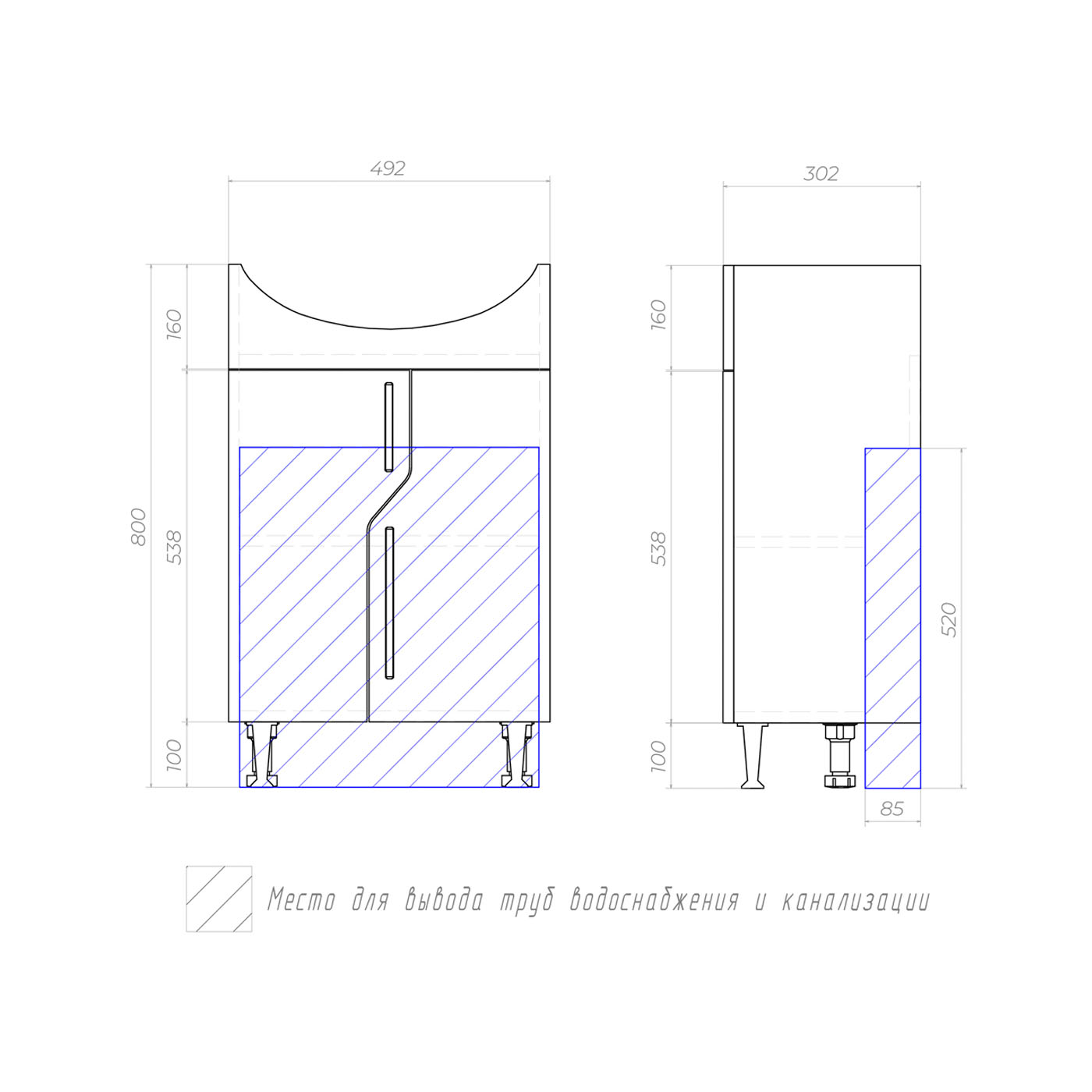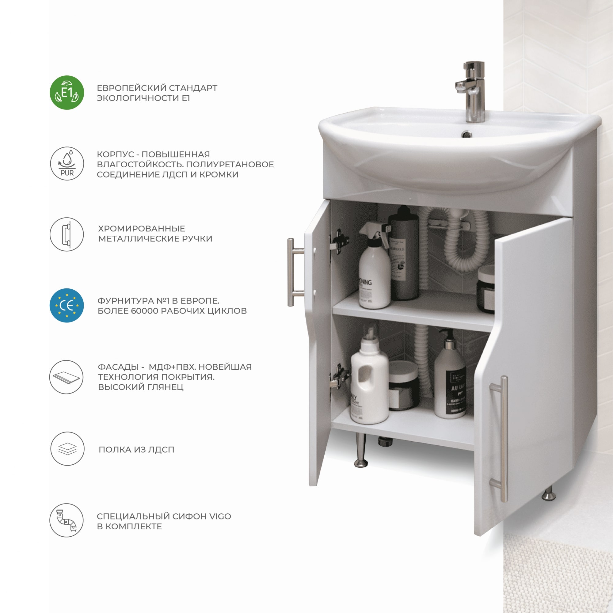 Оснащение: 2 дверцы, 1 полка ЛДСП, 2 опоры конус регулируемые, петли с механизмом плавного закрывания, 2 кухонные опоры, сифон.