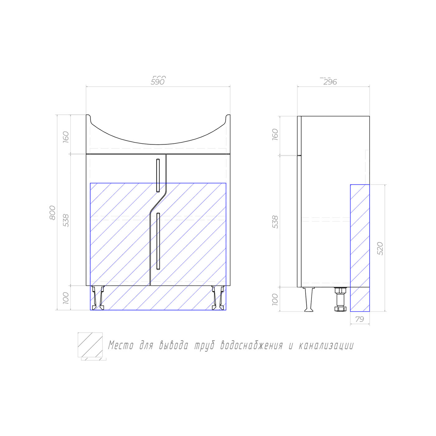 Оснащение: 2 дверцы, 1 полка ЛДСП, 2 опоры конус регулируемые, петли с механизмом плавного закрывания, 2 кухонные опоры, сифон.