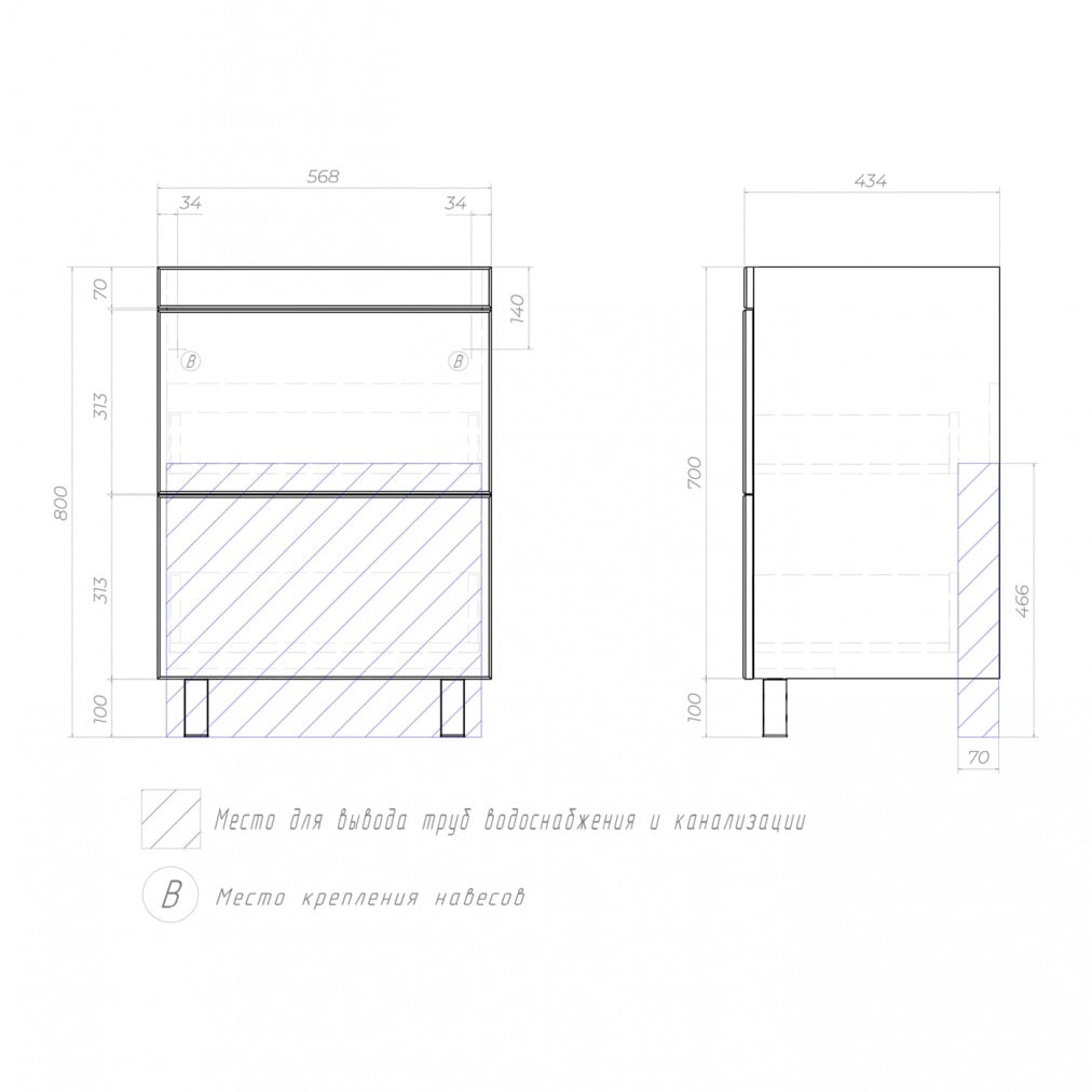 Тумба под раковину Land 600-0-2 (Como) навесная + Умывальник Como 60 станет украшением Вашей ванной комнаты.