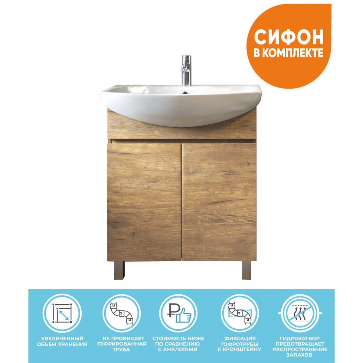 Тумба под раковину Wing 700-2-0 дуб золотой с умывальником