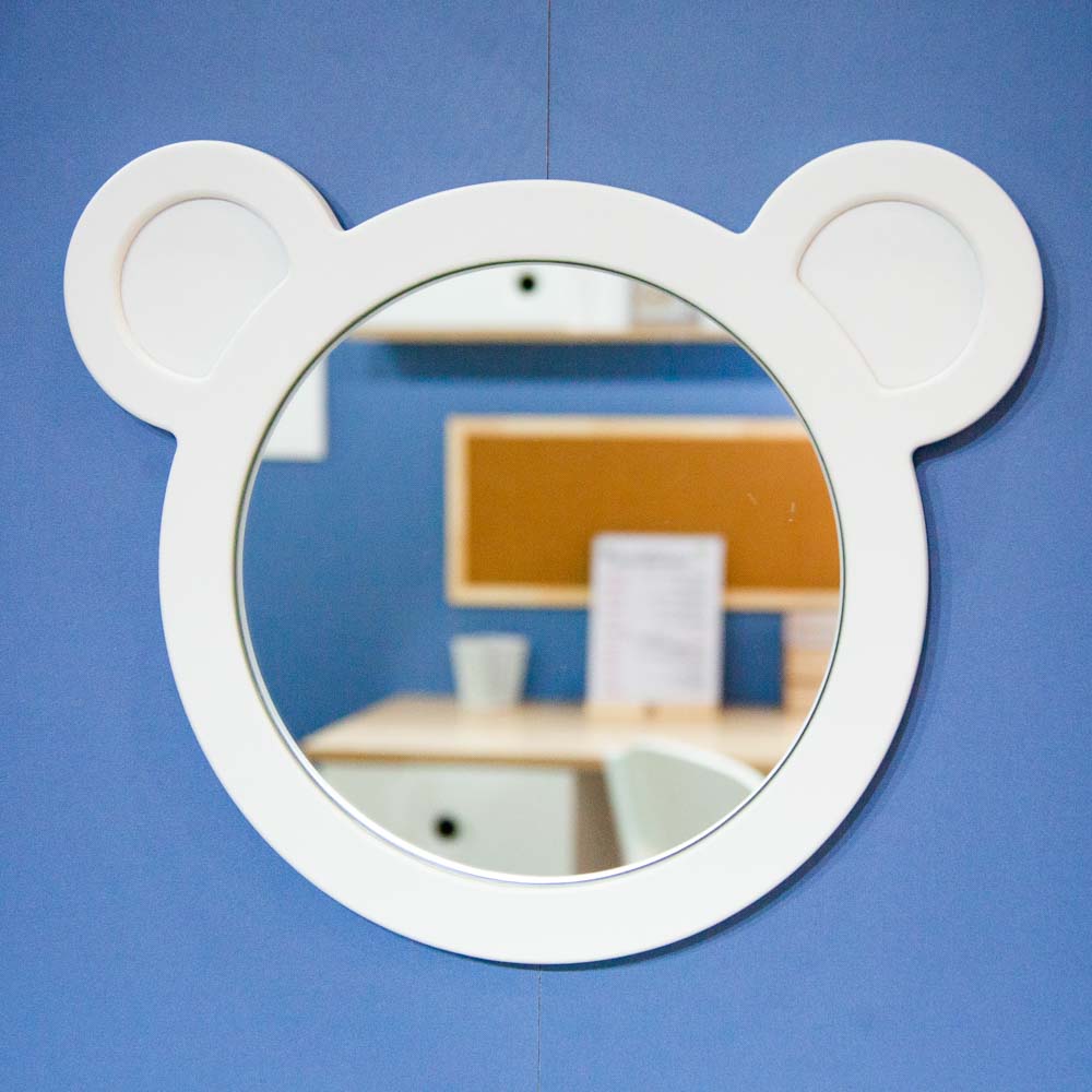 Белое зеркало в форме мишки добавит уюта и станет прекрасным украшением интерьера детской комнаты.