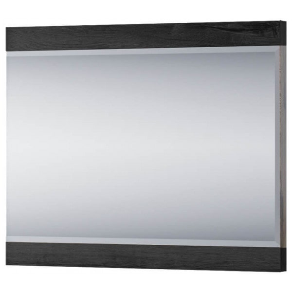 Зеркало навесное JAGGER преумножит освещённость помещения, а также станет прекрасным акцентом дизайна гостиной или спальни. Конструкция элемента представляет собой панель из ЛДСП, на которую крепится зеркало и планки в чёрном цвете.