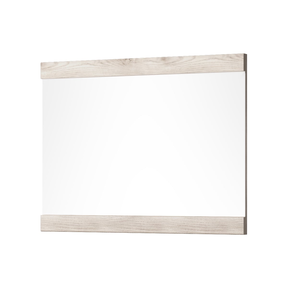 Зеркало навесное отличается от зеркала навесного B шириной и высотой. Зеркало навесное имеет прямоугольную форму, обрамлено планками сверху и снизу. Конструкция элемента представляет собой панель из ЛДСП, на которую крепится зеркало, планки из ЛДСП.