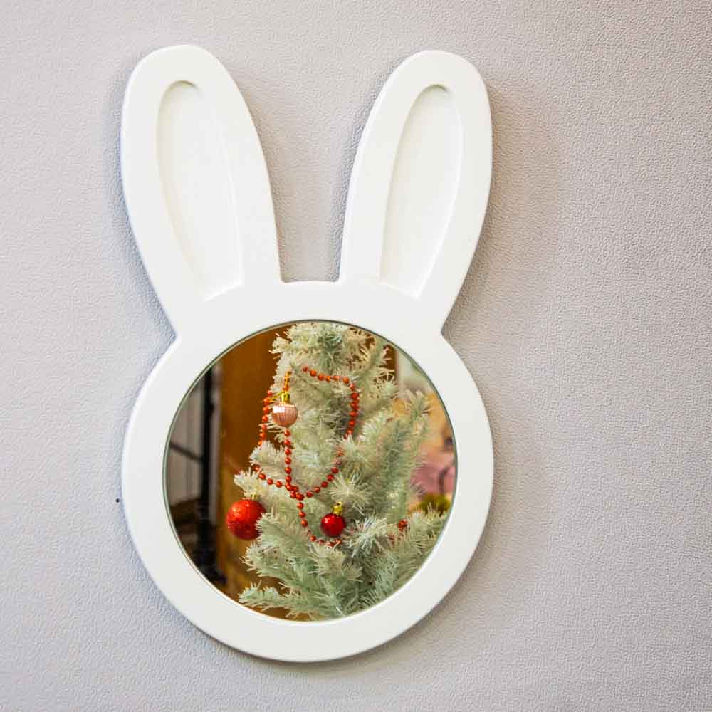 Белое зеркало в форме зайки добавит уюта и станет прекрасным украшением интерьера детской комнаты.